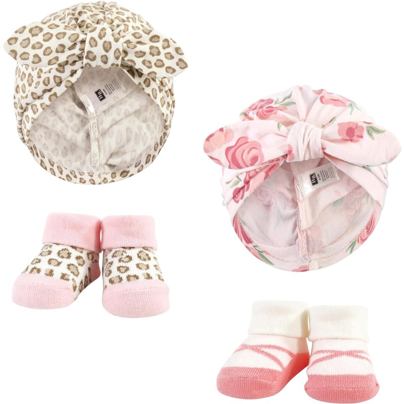 Hudson Baby trendy headwraps are the cutest accessory to cover your baby girl's head with the fashionable prints and patterns. Our headwraps are made with lightweight, stretchy fabric that will stay on your little one's head and keep them feeling warm and comfortable. Our modern designs will keep them looking on-trend and fashionable. Our value pack gives you a mix of prints and patterns to match with your baby girl's outfits. Our matching socks make dressing your little one fun and convenient.