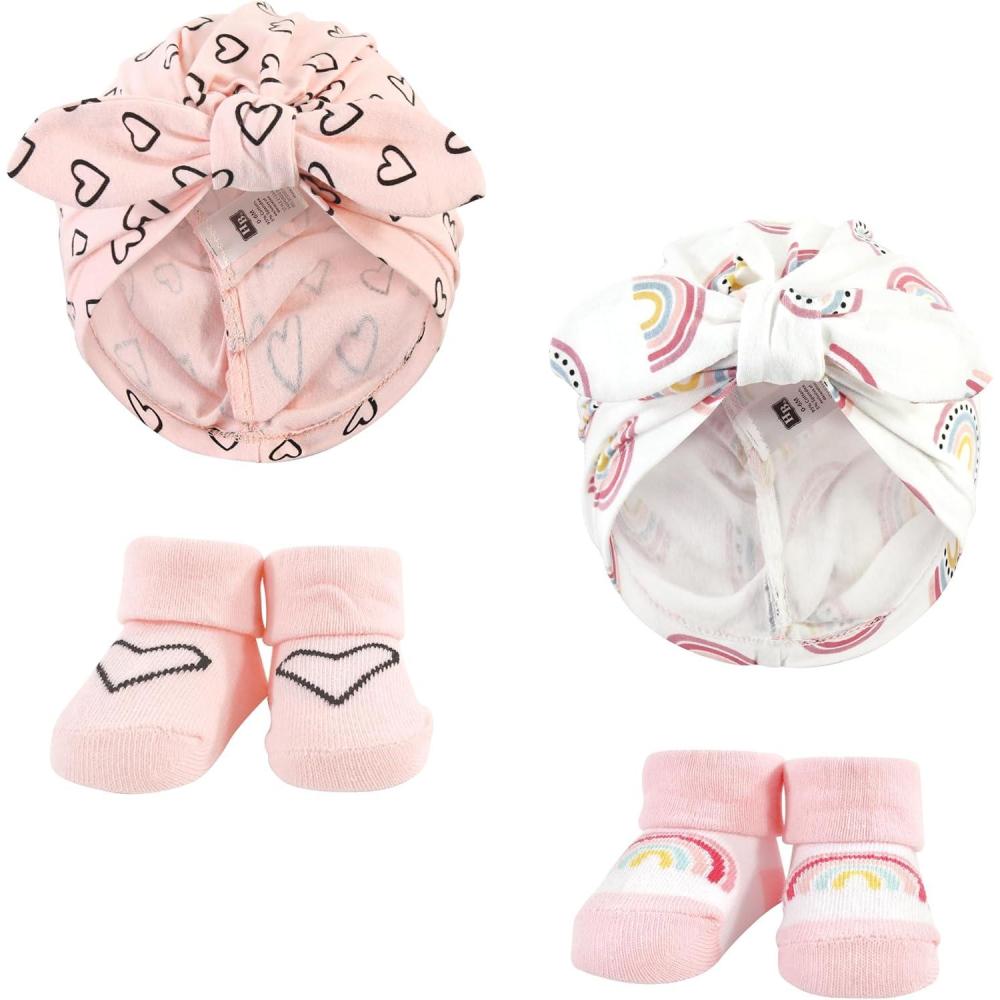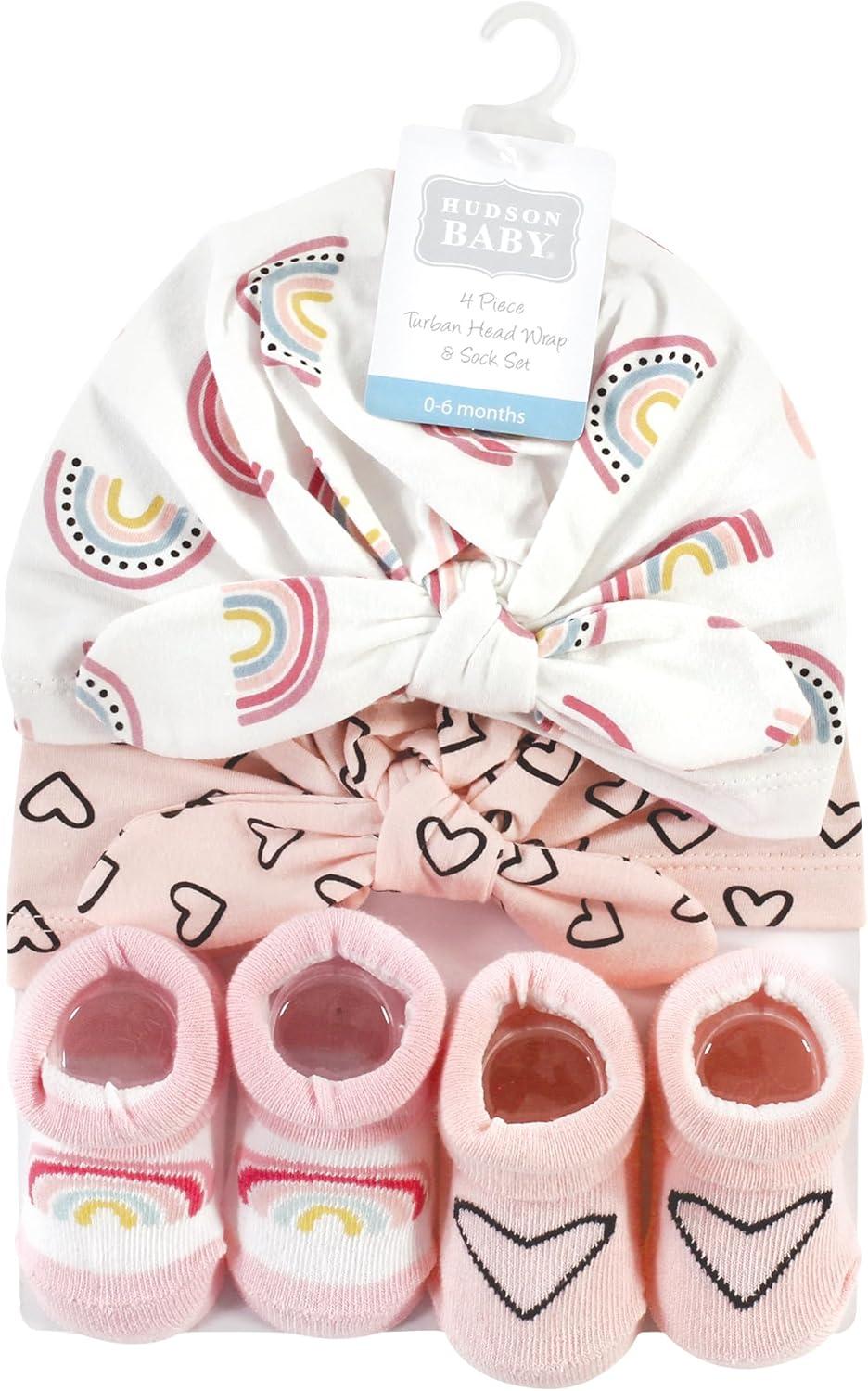 Hudson Baby baby-girls Turban and Socks Set(Modern Rainbow)