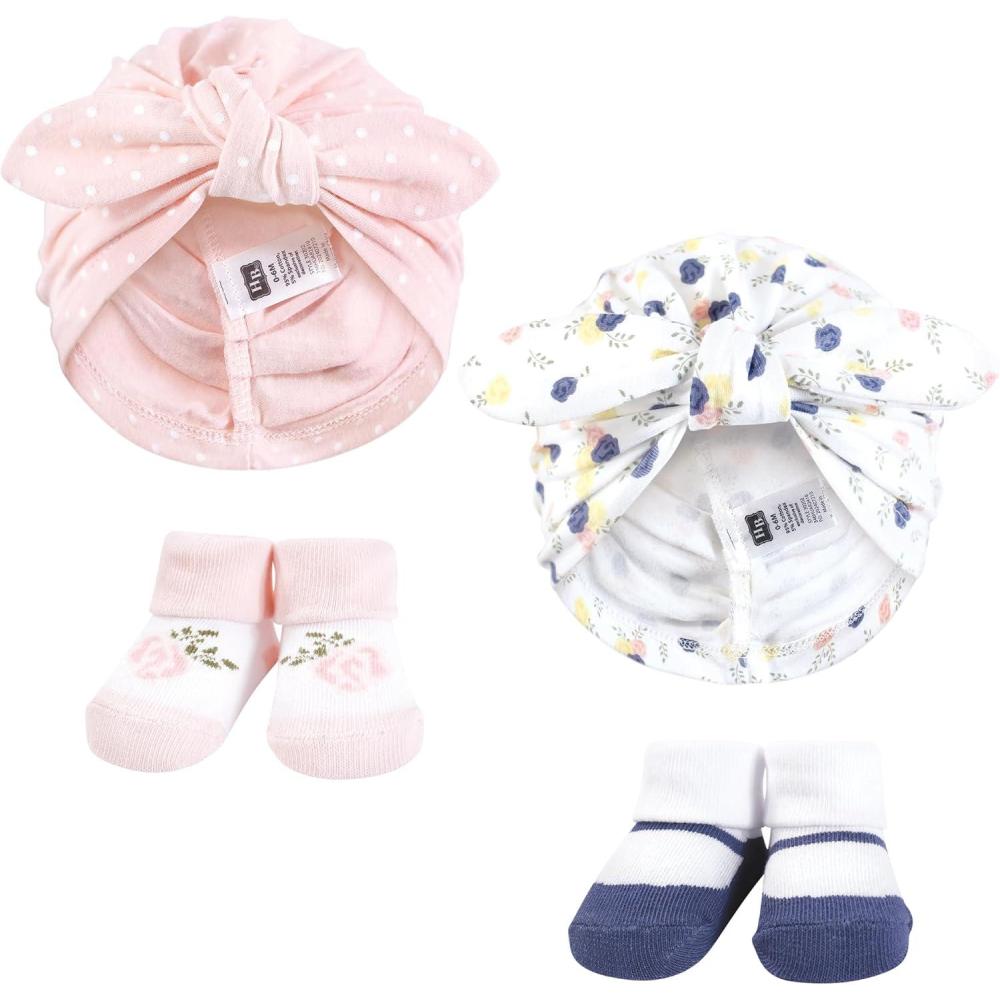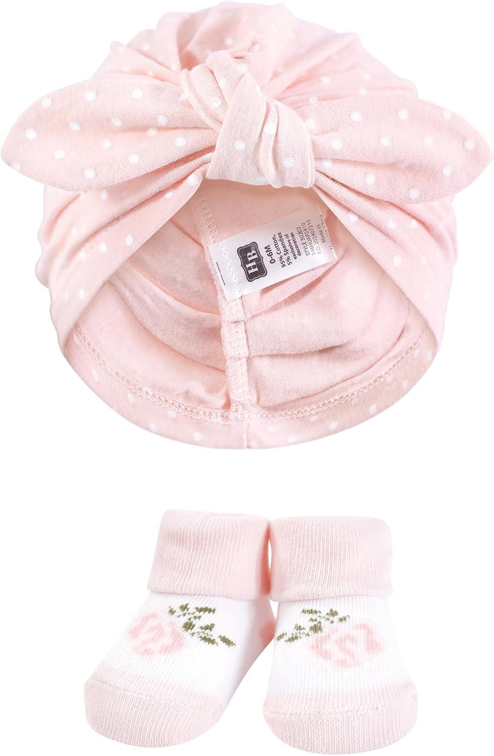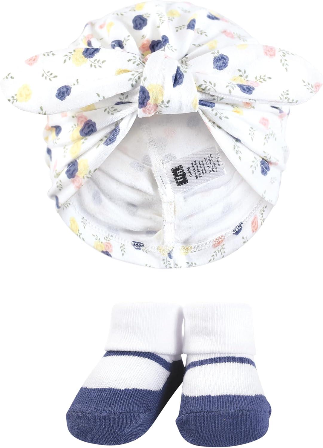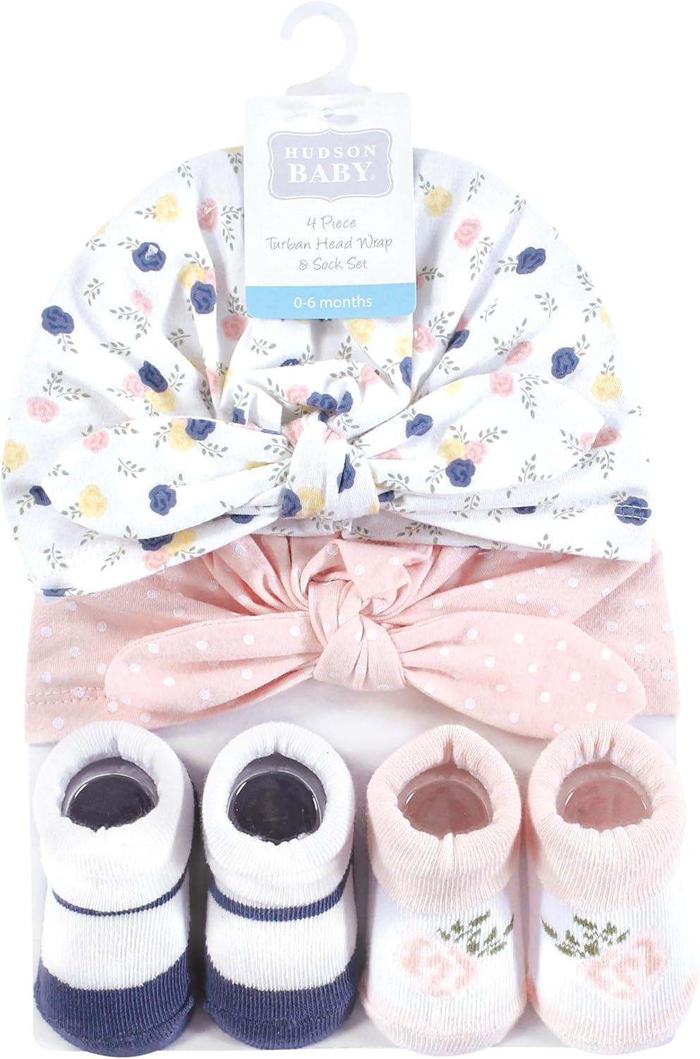 Hudson Baby baby-girls Turban and Socks Set(Multi Color Tiny Rose)