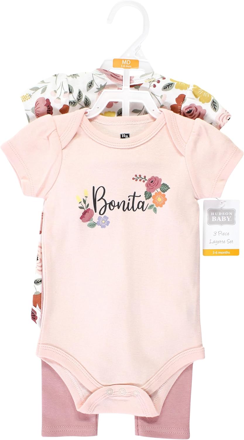 Hudson Baby baby-girls Unisex Baby Cotton Bodysuit and Pant Set, Bonita, 0-3 Months