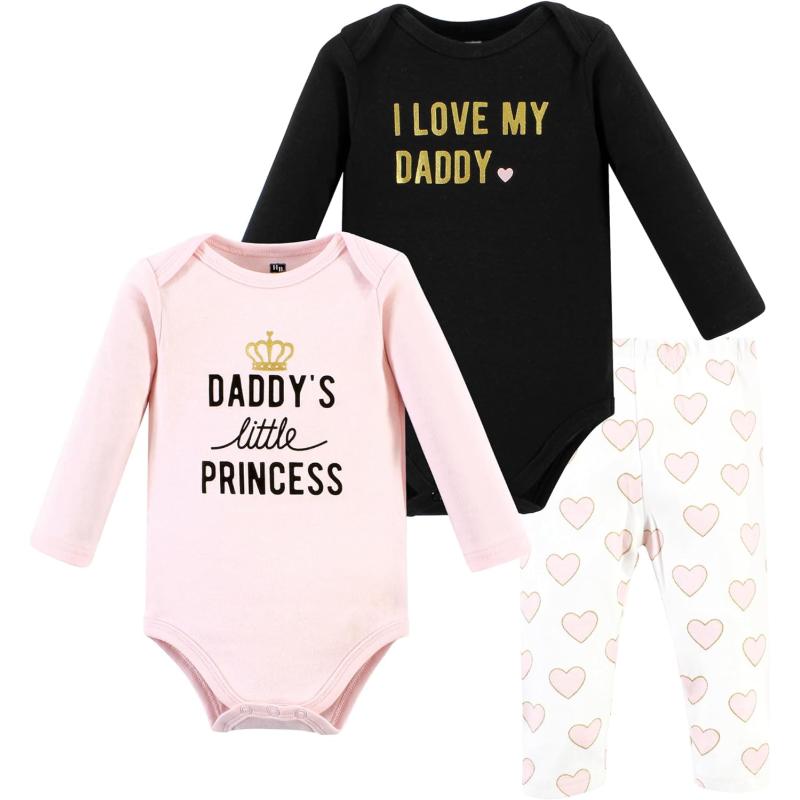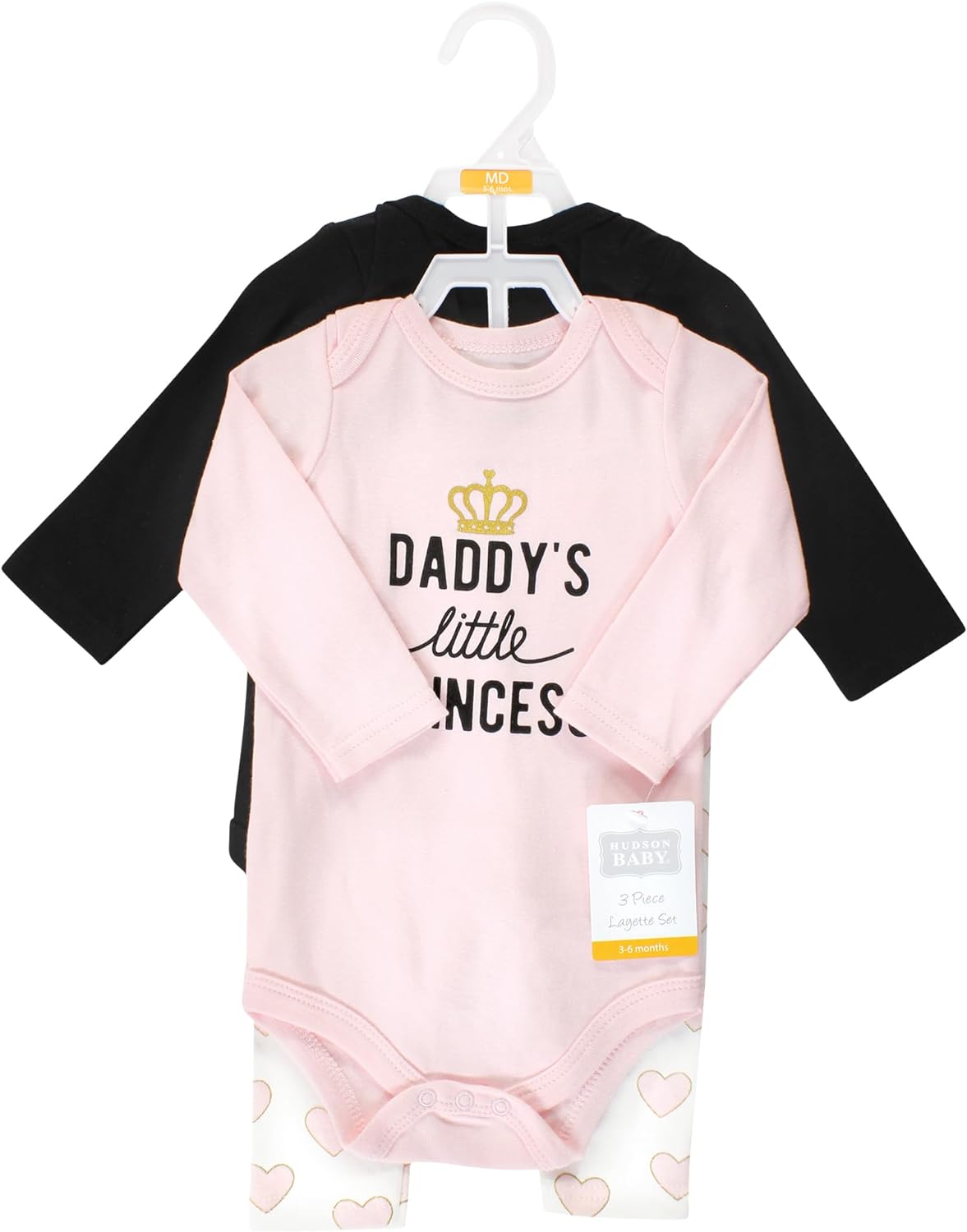 Hudson Baby baby-girls Unisex Baby Cotton Bodysuit and Pant Set, Daddys Little Princess, 9-12 Months(Daddys Little Princess Long Sleeve)
