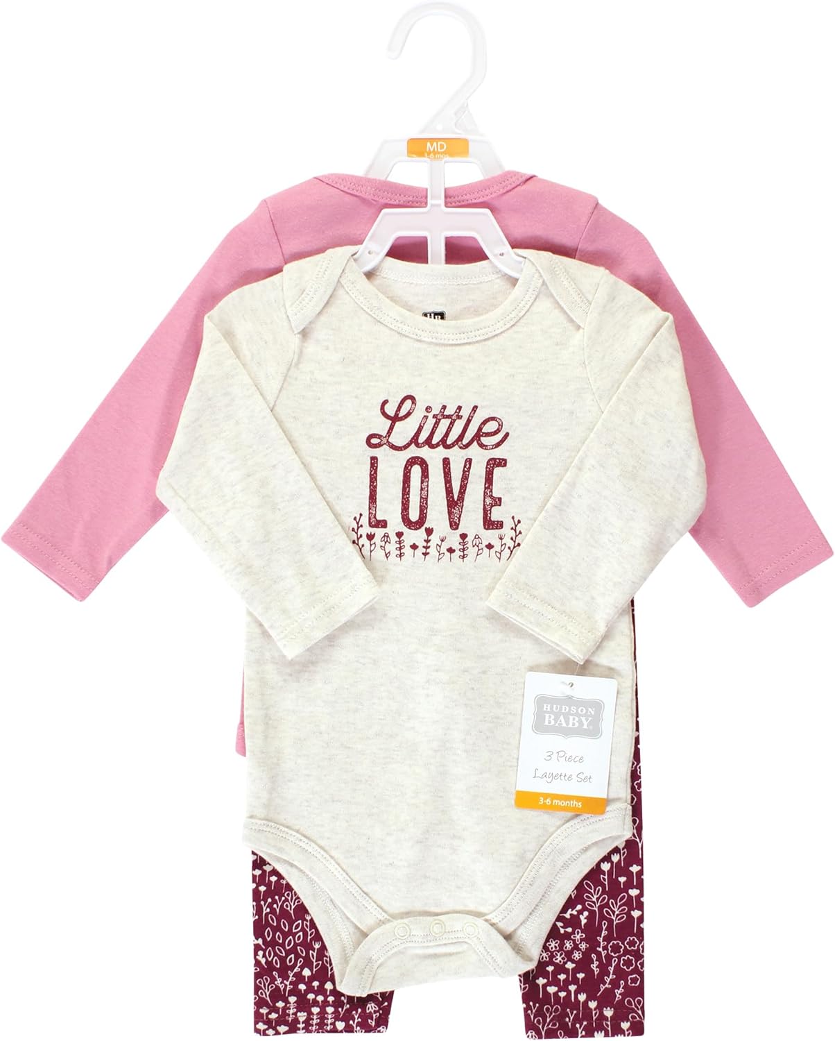 Hudson Baby baby-girls Unisex Baby Cotton Bodysuit and Pant Set, Little Love Flowers, Preemie(Little Love Flowers Long Sleeve)