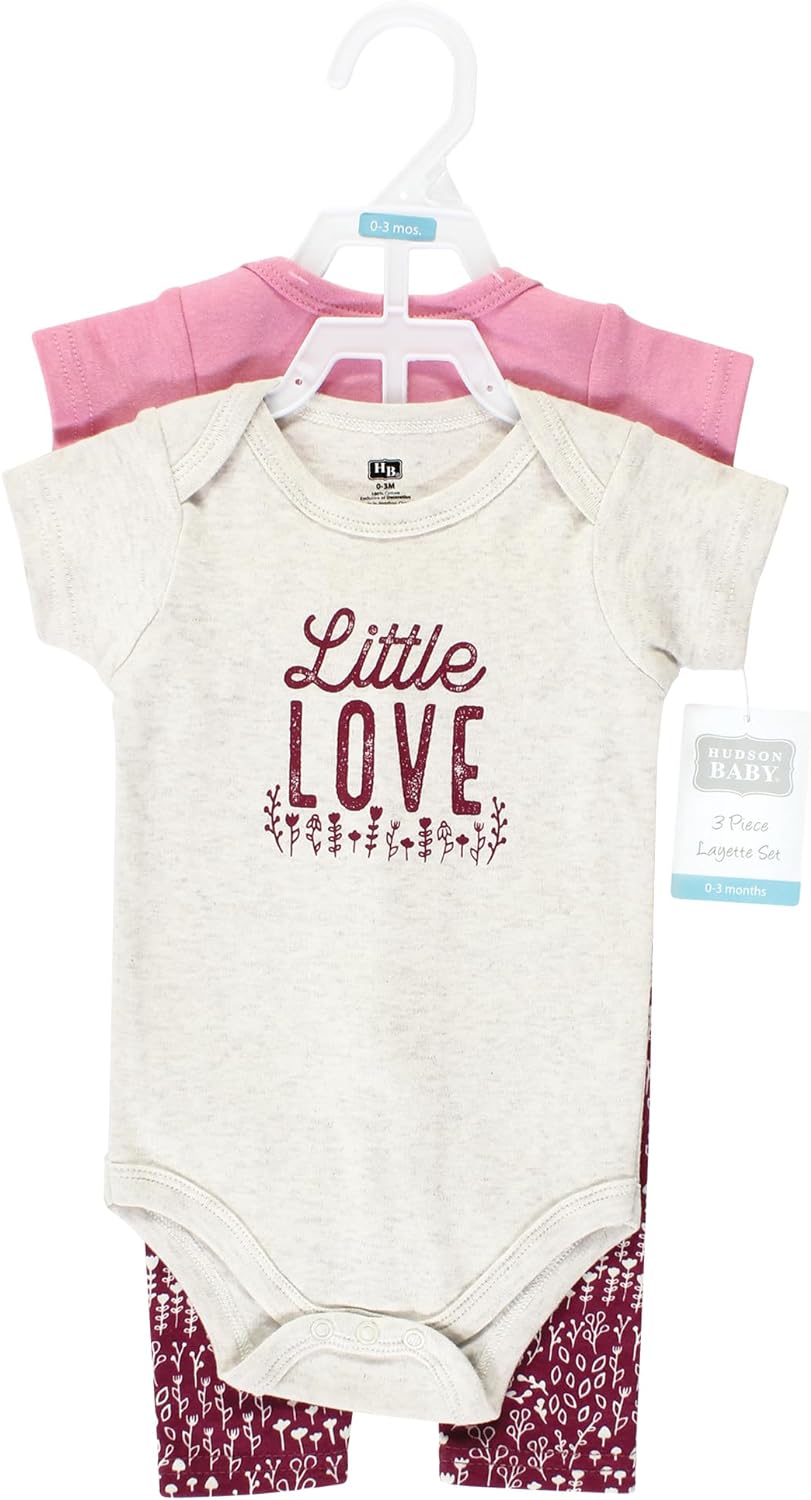 Hudson Baby baby-girls Unisex Baby Cotton Bodysuit and Pant Set, Little Love Flowers, Preemie(Little Love Flowers Short Sleeve)