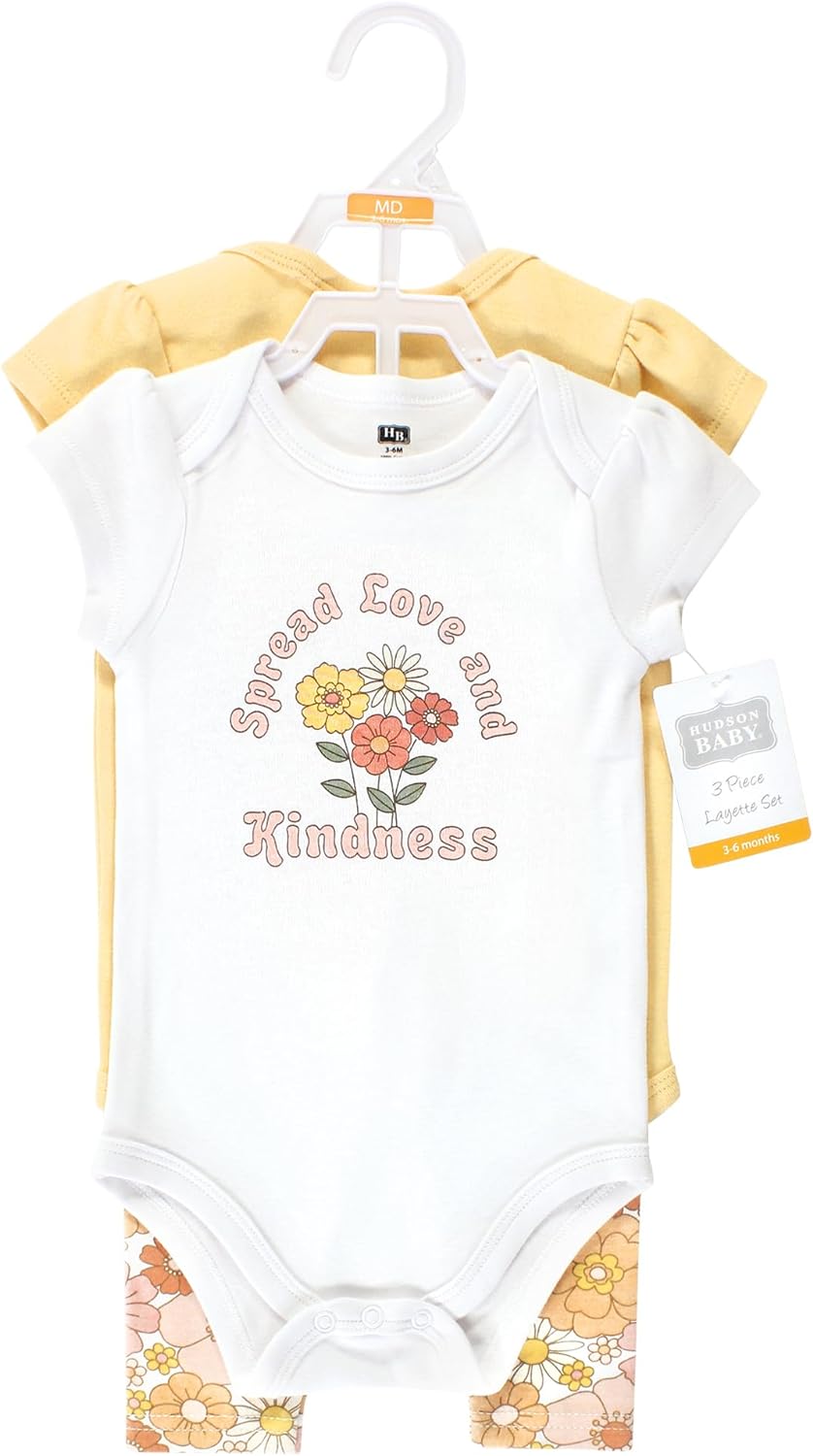 Hudson Baby baby-girls Unisex Baby Cotton Bodysuit and Pant Set, Peace Love Flowers, 18-24 Months(Peace Love Flowers Short Sleeve)