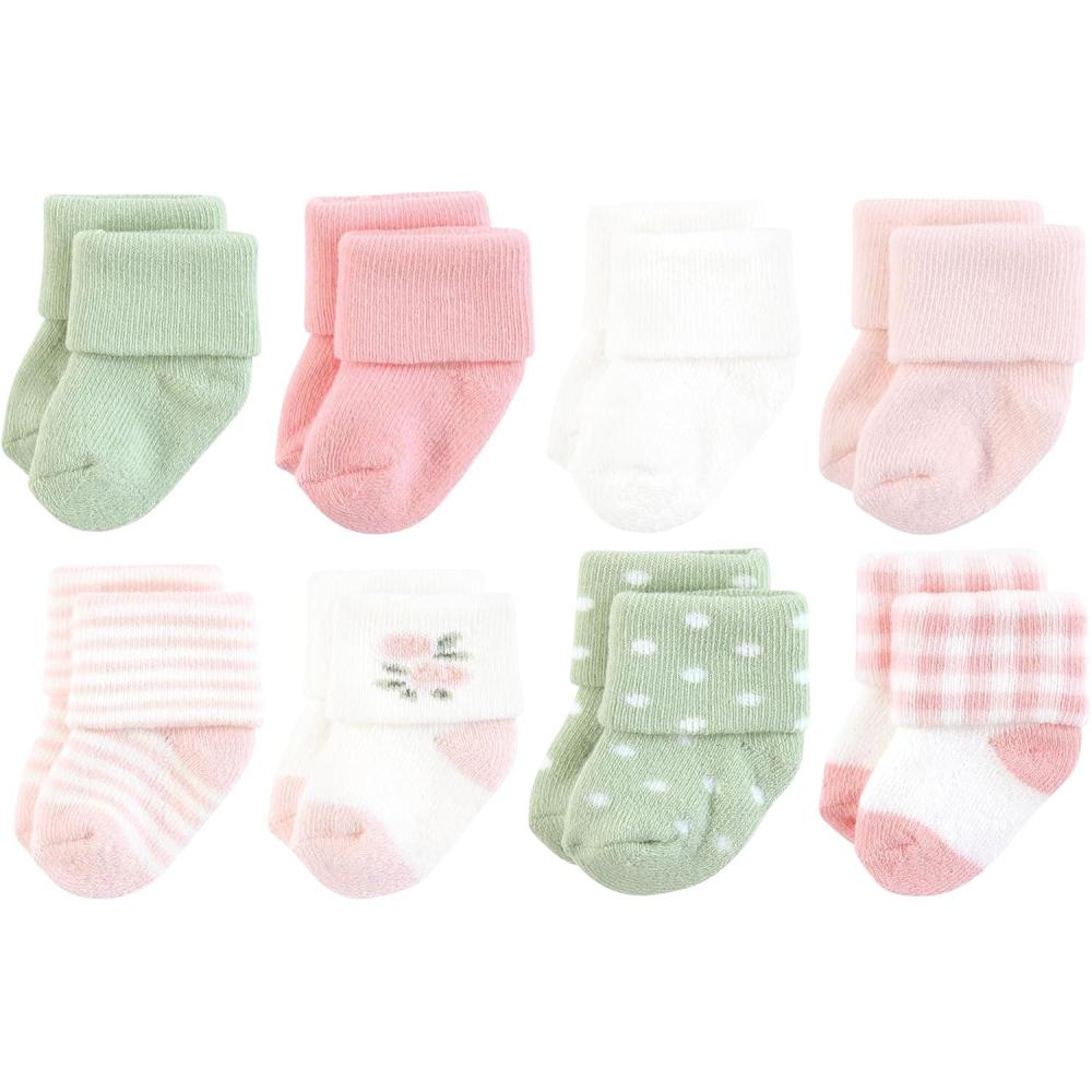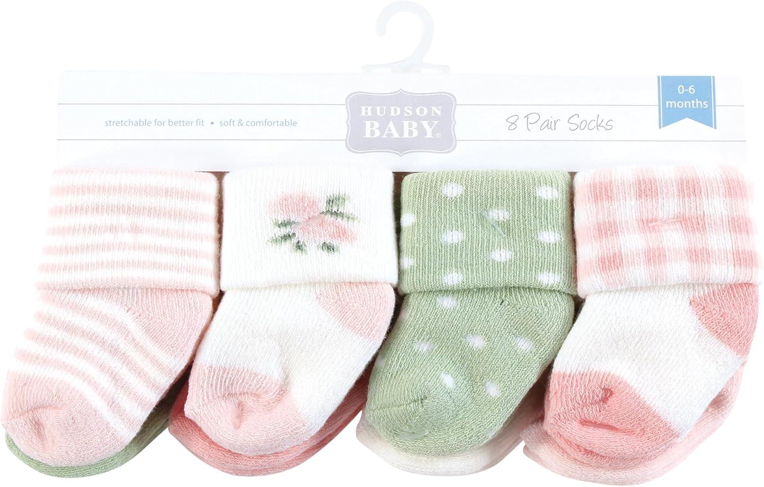 Hudson Baby Baby Infant Girl Cotton Rich Newborn and Terry Socks, Pink Sage Rose, 6-12 Months