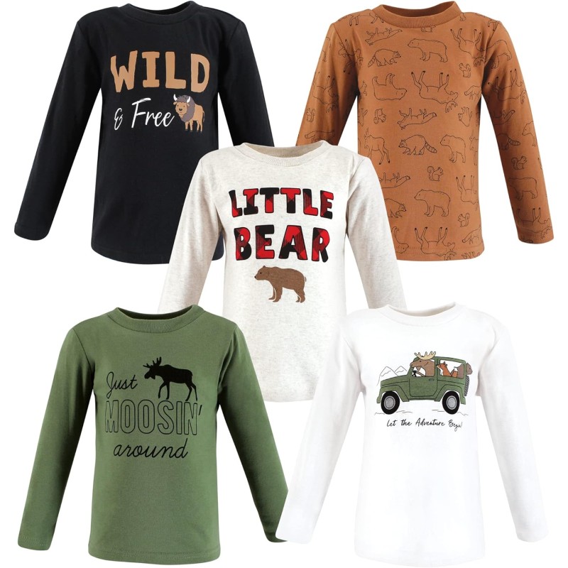 Hudson Baby t-shirts are great everyday tops for your little ones. Featuring fun prints and patterns, our t-shirts are made with comfortable, soft cotton poly fabric that feels wonderful on children's skin. Our sets include five t-shirts so you can mix and match with your child's wardrobe for fun everyday outfits.