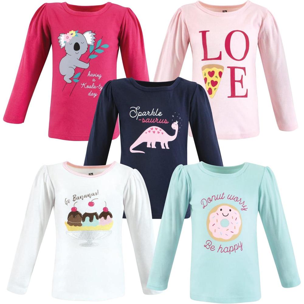 Hudson Baby t-shirts are great everyday tops for your little ones. Featuring fun prints and patterns, our t-shirts are made with comfortable, soft cotton poly fabric that feels wonderful on children's skin. Our sets include five t-shirts so you can mix and match with your child's wardrobe for fun everyday outfits.