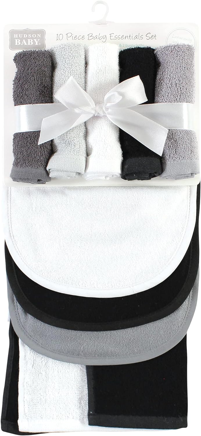 Hudson Baby Baby Rayon from Bamboo Bib, Burp Cloth and Washcloth 10pk(Black White)