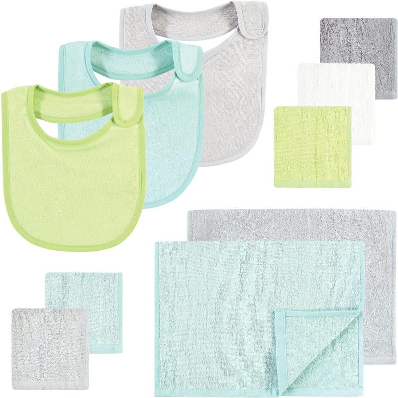 Hudson Baby Baby Rayon from Bamboo Bib, Burp Cloth and Washcloth 10pk(Gray Mint Lime)