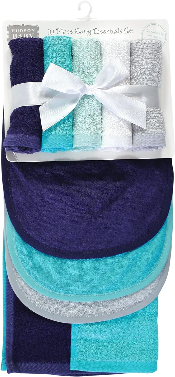 Hudson Baby Baby Rayon from Bamboo Bib, Burp Cloth and Washcloth 10pk(Navy Teal)
