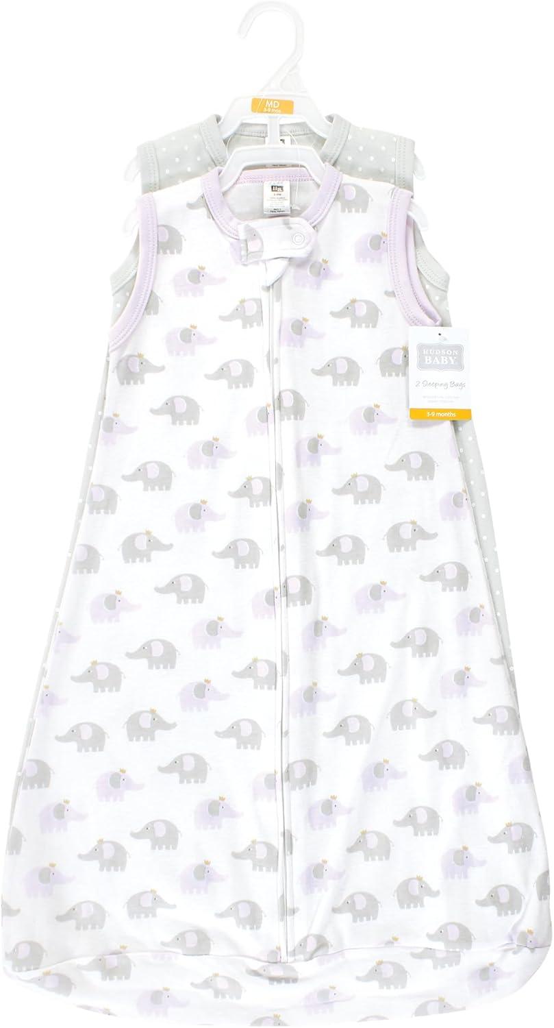 Hudson Baby BabyCotton Long-Sleeve Wearable Sleeping Bag, Sack, Blanket(Lilac Elephants Sleeveless)