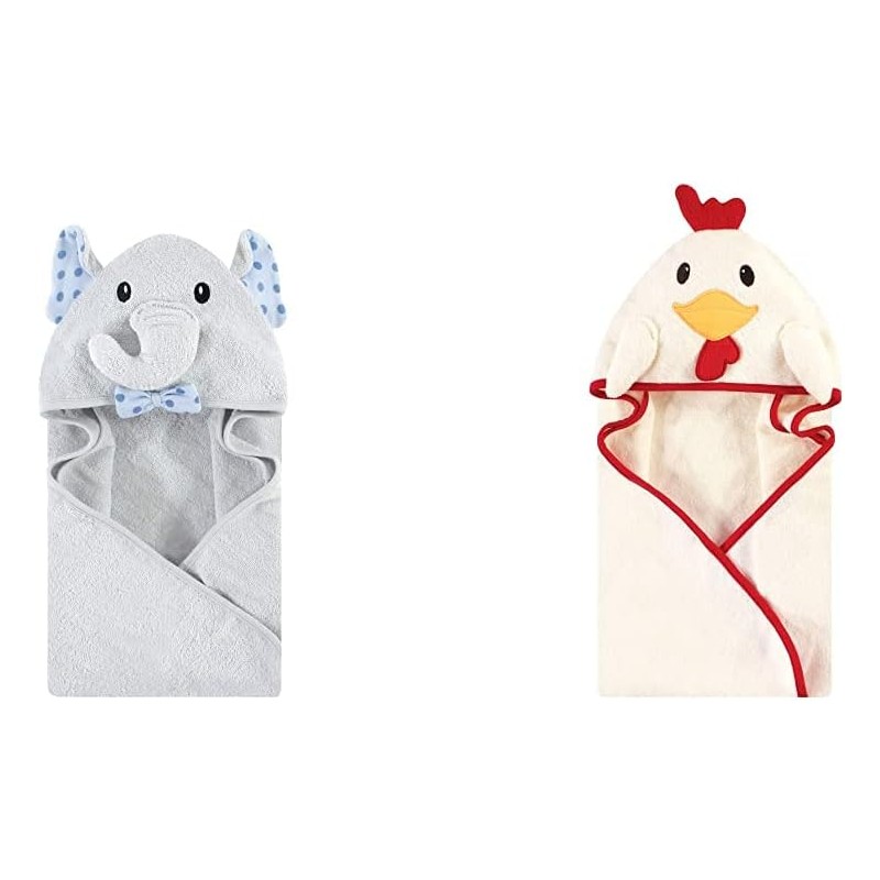 Hudson Baby Boy Animal Face Hooded Towel 2-Pack, Cow Rooster(Blue Dots Gray Elephant Rooster One Size)