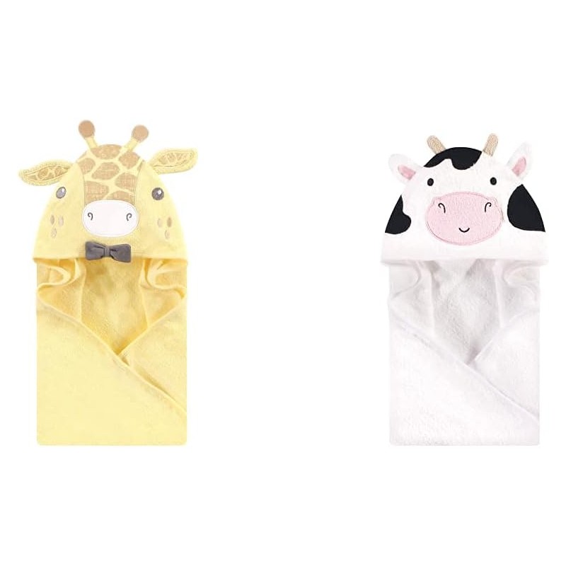 Hudson Baby Boy Animal Face Hooded Towel 2-Pack, Cow Rooster(Bowtie Giraffe Cow One Size)