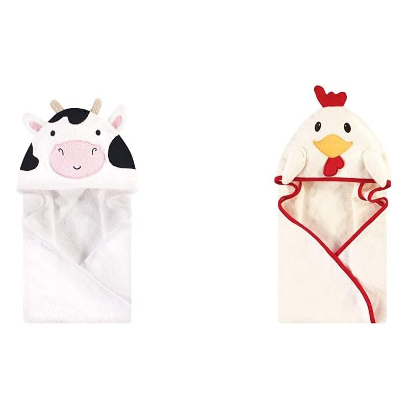 Hudson Baby Boy Animal Face Hooded Towel 2-Pack, Cow Rooster(Cow Rooster One Size)