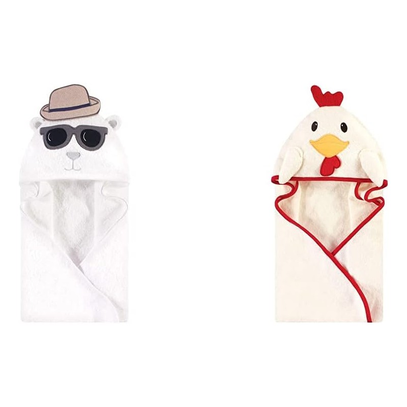 Hudson Baby Boy Animal Face Hooded Towel 2-Pack, Cow Rooster(Handsome Bear Rooster One Size)