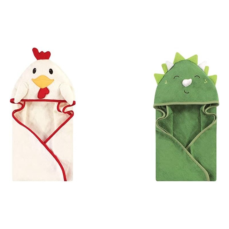 Hudson Baby Boy Animal Face Hooded Towel 2-Pack, Cow Rooster(Rooster Dinosaur One Size)