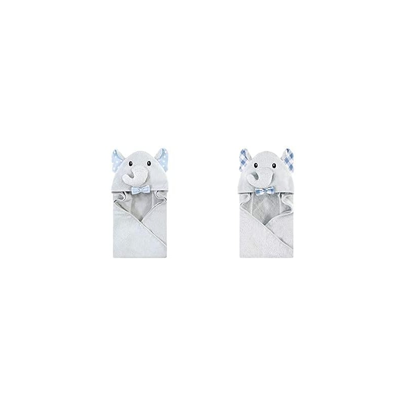 Hudson Baby Boy Animal Face Hooded Towel 2-Pack, Cow Rooster(White Dots Gray Elephant Gingham Elephant One Size)
