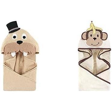 Hudson Baby Boy Cotton Animal Face Hooded Towel 2-Pack, Classy Walrus Banana Monkey(Little Fawn Modern Bear)