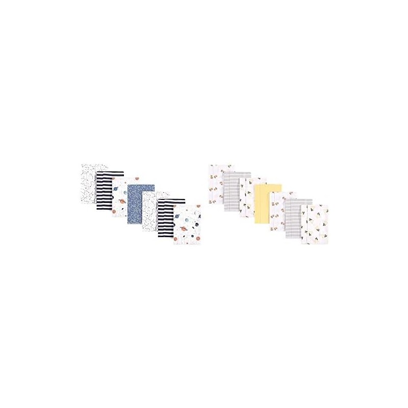 Hudson Baby Boy Cotton Flannel Burp Cloth 14-Pack, Narwhal Sailboat(Space Ya Dig One Size)