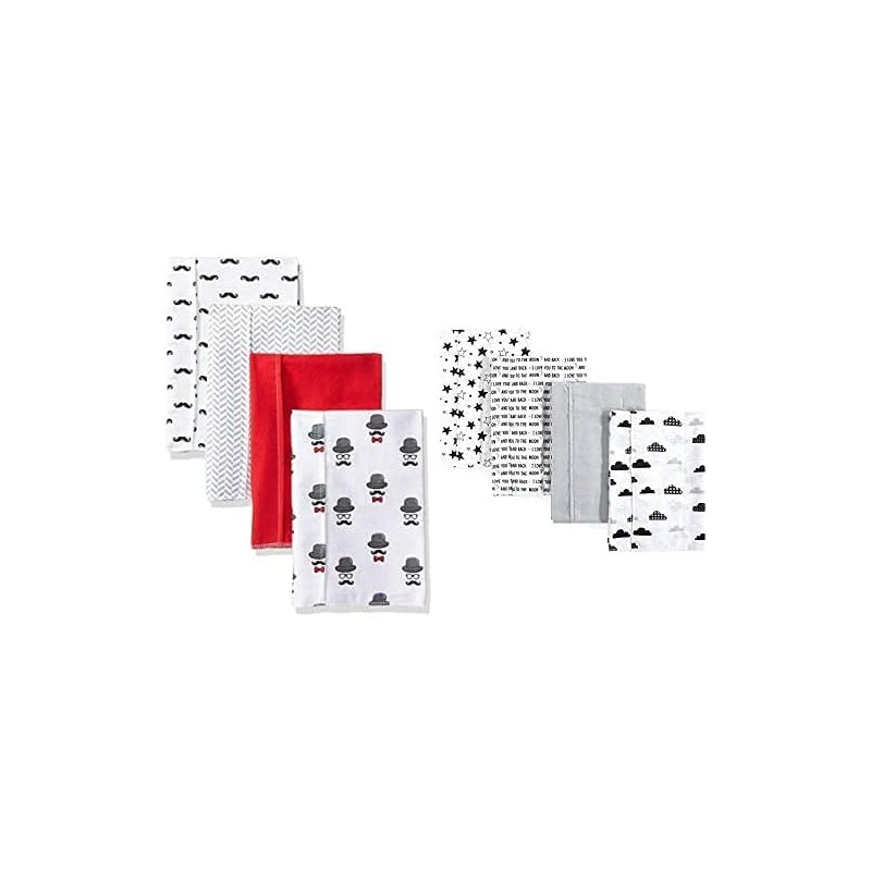Hudson Baby Boy Cotton Flannel Burp Cloth 8-Pack, Gray Whale Whale(Mustache Hat Moon and Back One Size)