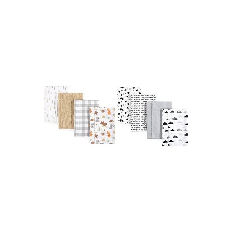 Hudson Baby Boy Cotton Flannel Burp Cloth 8-Pack, Gray Whale Whale(Woodland Moon and Back One Size)