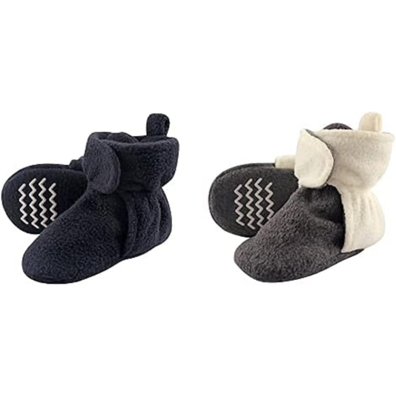 Hudson Baby Cozy Fleece Booties with Non Skid Bottom, 2 Pack, Charcoal Cream, 0-6 Months(Hudson Baby Cozy Fleece Booties with Non Skid Bottom, 2 Pack, Charcoal Cream, 0-6 Months)