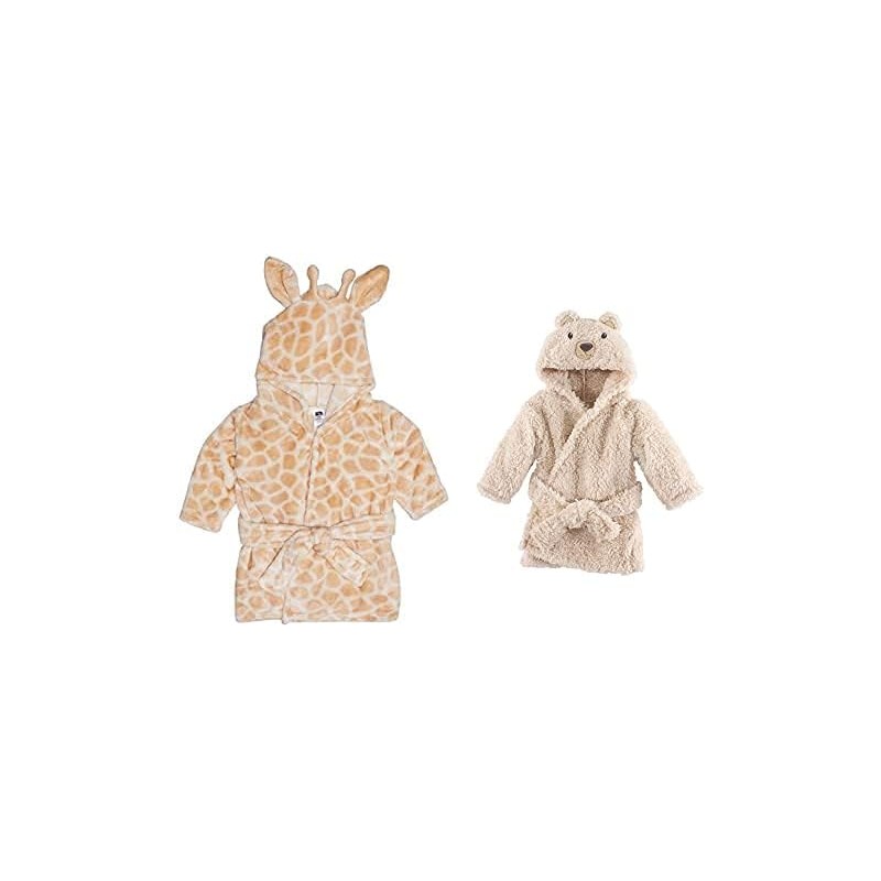 Hudson Baby Boy Plush Animal Face Bathrobe 2-Pack, Blue Plaid Cozy Bear(Giraffe Cozy Bear One Size)