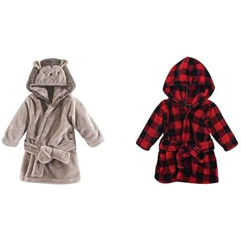 Hudson Baby Boy Plush Animal Face Bathrobe 2-Pack, Fox Giraffe(Hedgehog Red Black Plaid)