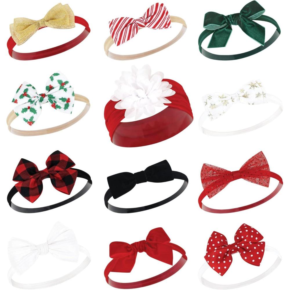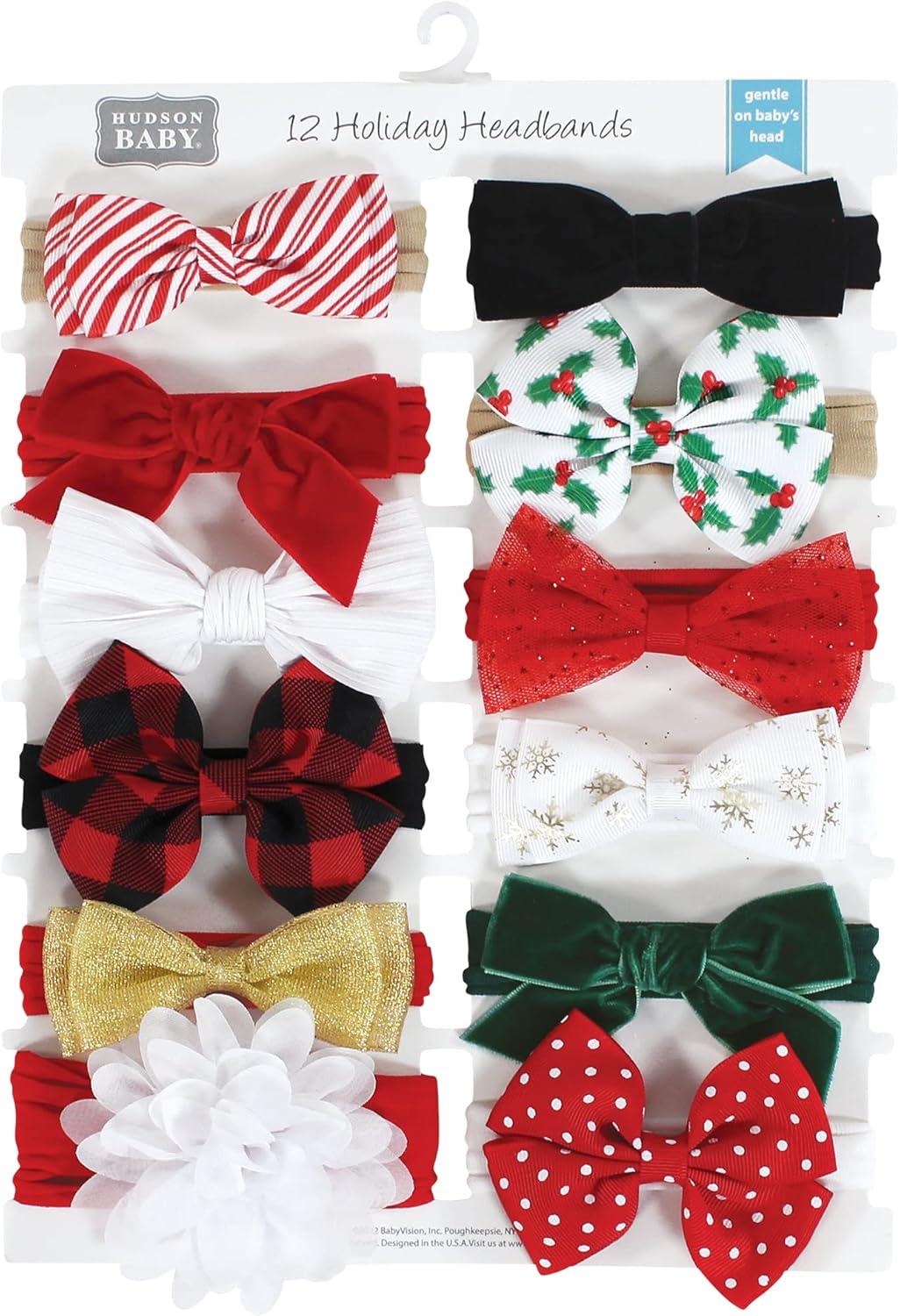 Hudson Baby Cotton and Synthetic Headbands, Size 0-24 Months(12 Days of Christmas Holly)