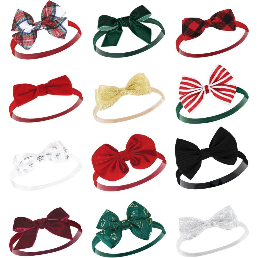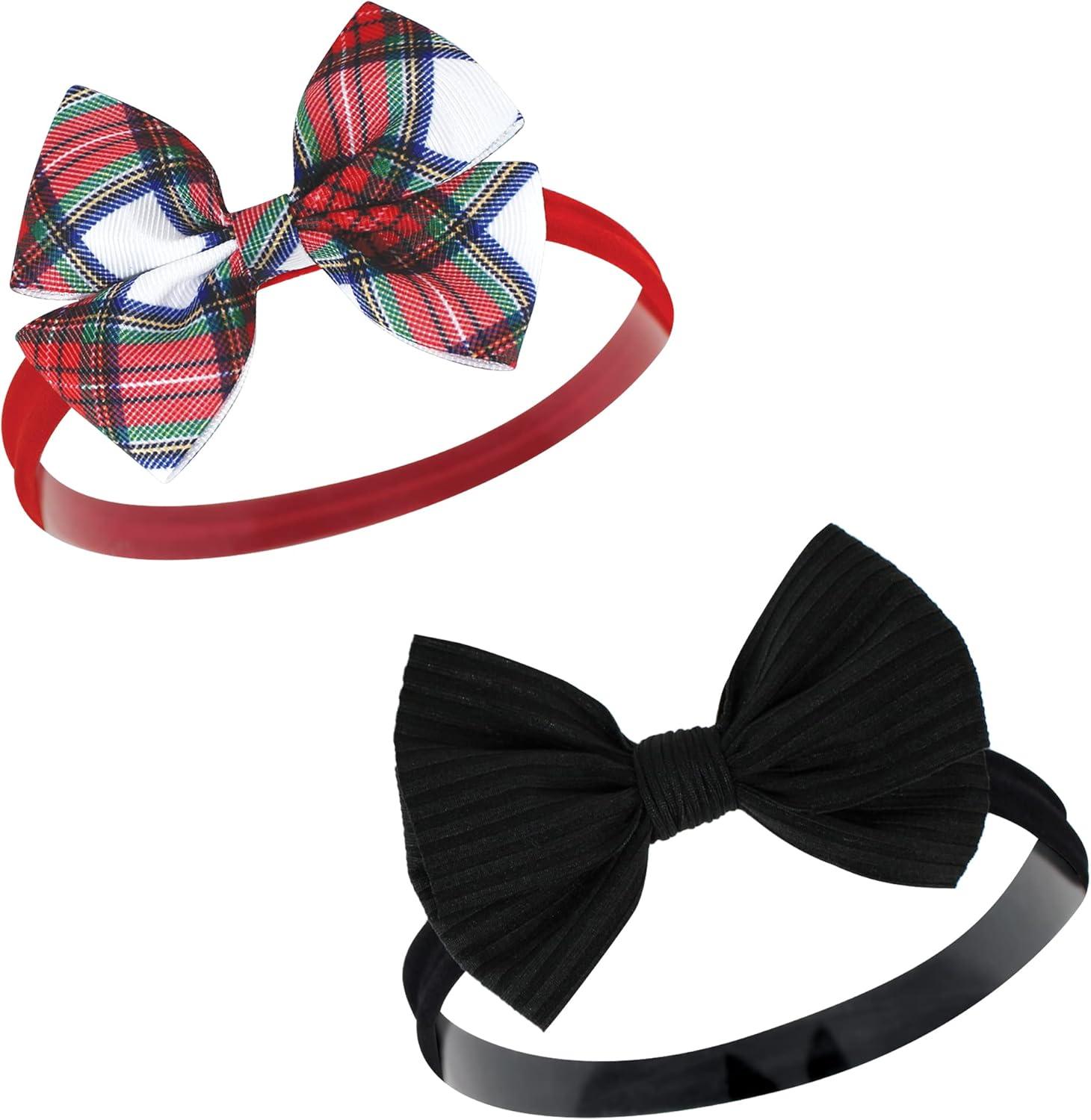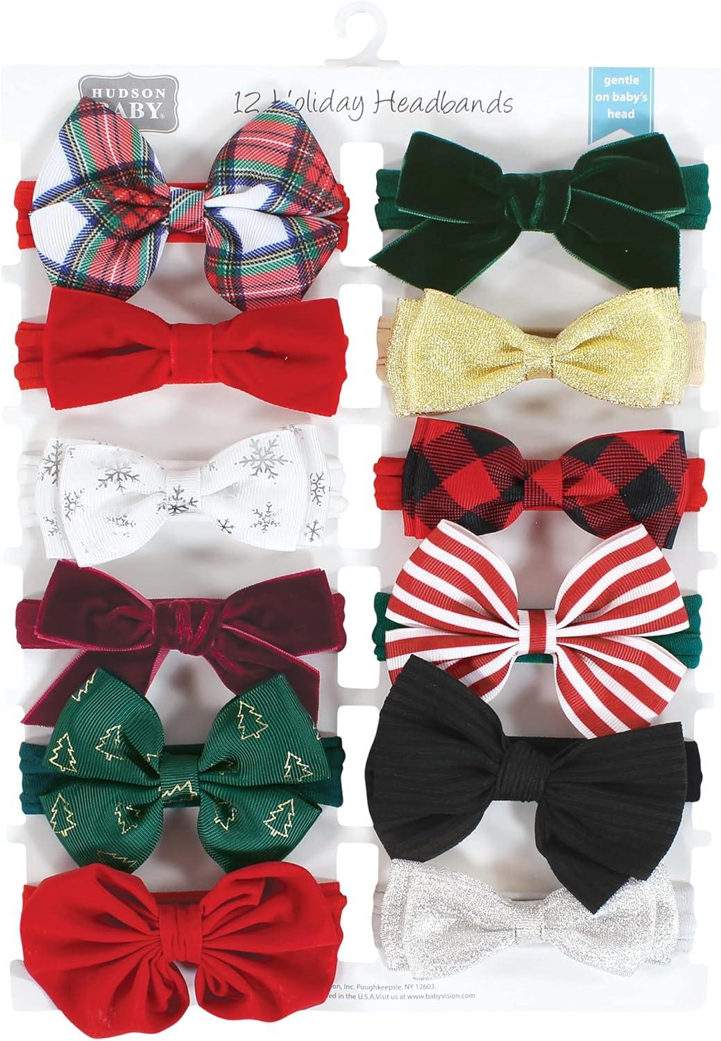 Hudson Baby Cotton and Synthetic Headbands, Size 0-24 Months(12 Days of Christmas Plaid)