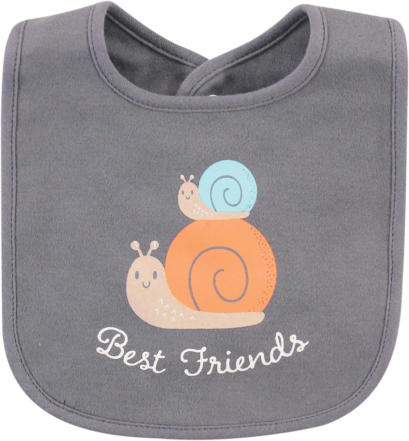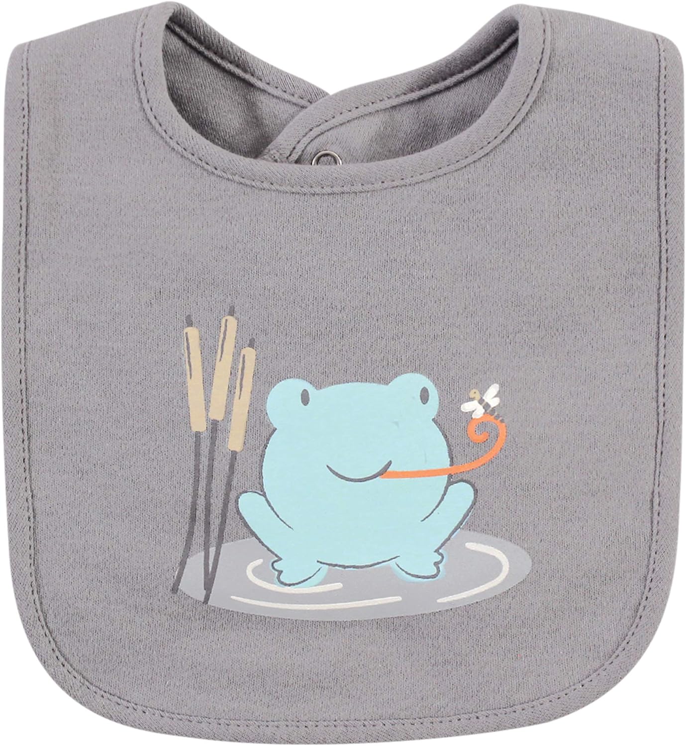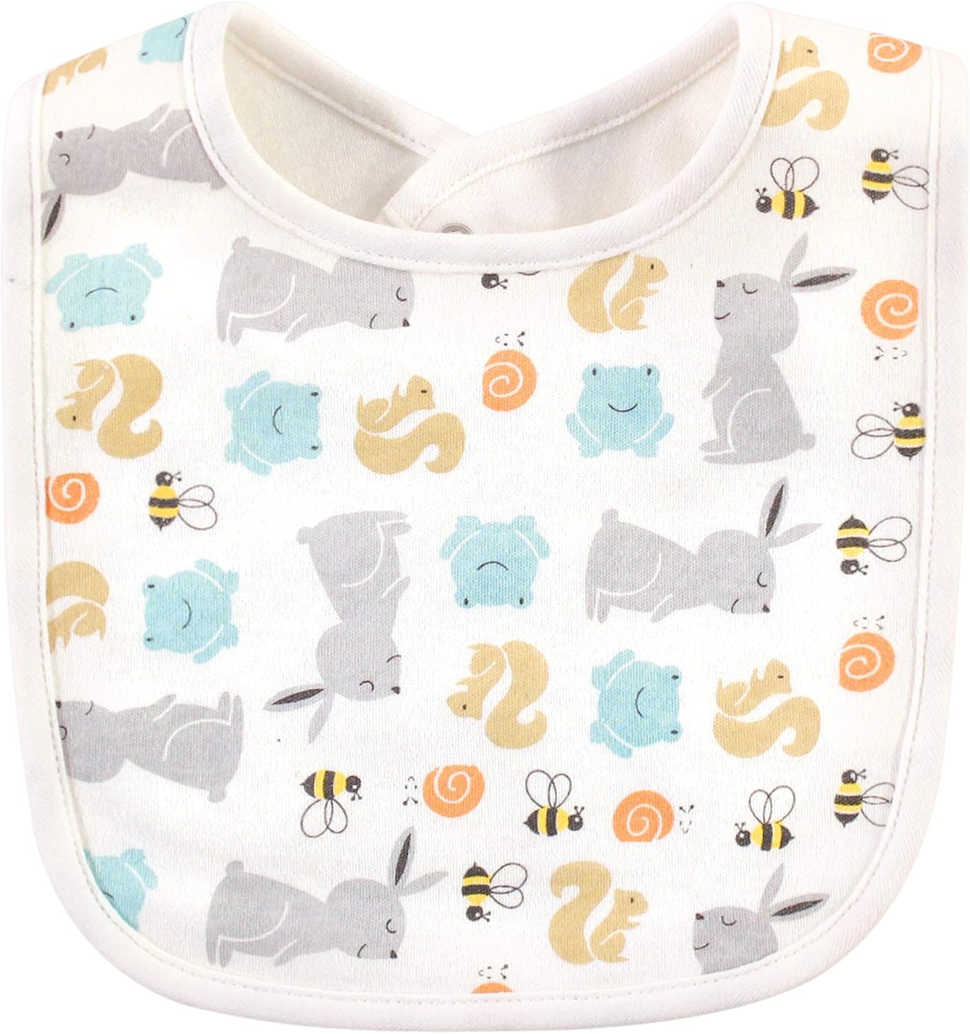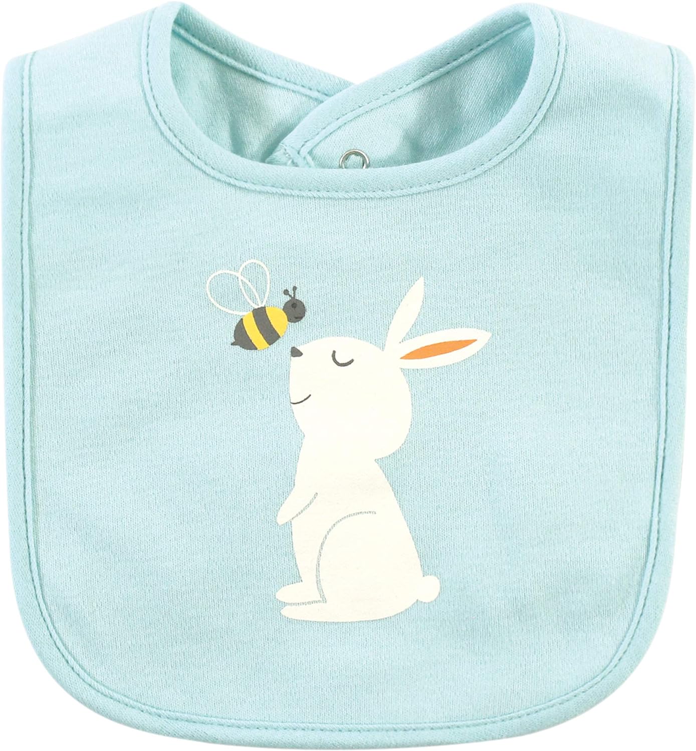 Hudson Baby is a premium baby clothing and accessories line that features better feeding solutions for mom and baby. Hudson Baby 5-Pack soft cotton droller bibs are ideal for catching drool and keeping baby dry. Terry backing helps absorb any liquid and stays off baby's clothes and neck to prevent rashes and clothing changes. Hook and loop closure is easy on baby's skin. Bib is perfect for feedings or all day to catch any drool.