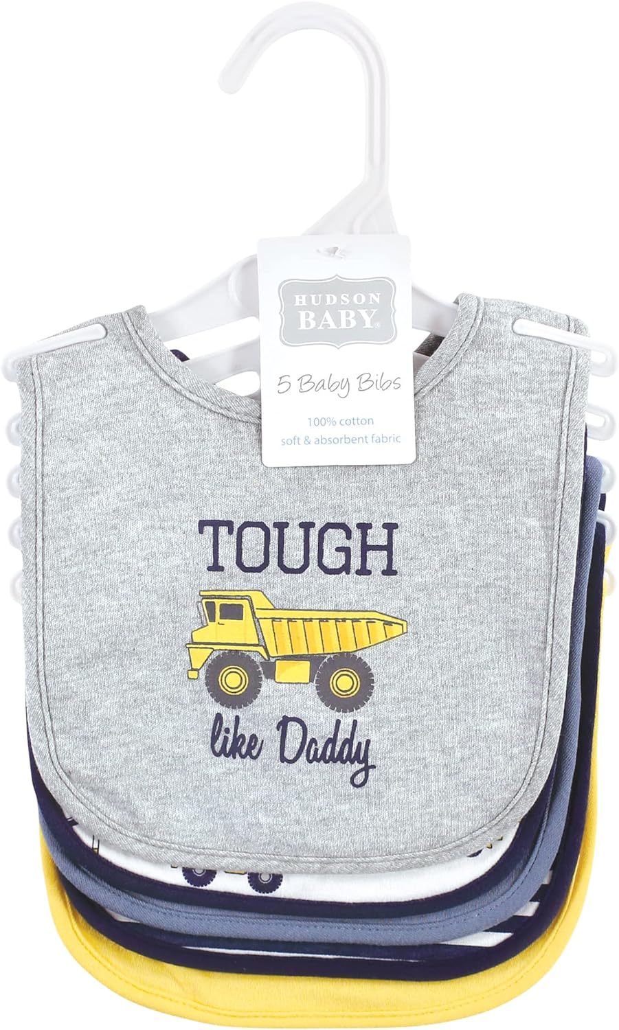 Hudson Baby is a premium baby clothing and accessories line that features better feeding solutions for mom and baby. Hudson Baby 5-Pack soft cotton droller bibs are ideal for catching drool and keeping baby dry. Terry backing helps absorb any liquid and stays off baby's clothes and neck to prevent rashes and clothing changes. Hook and loop closure is easy on baby's skin. Bib is perfect for feedings or all day to catch any drool.