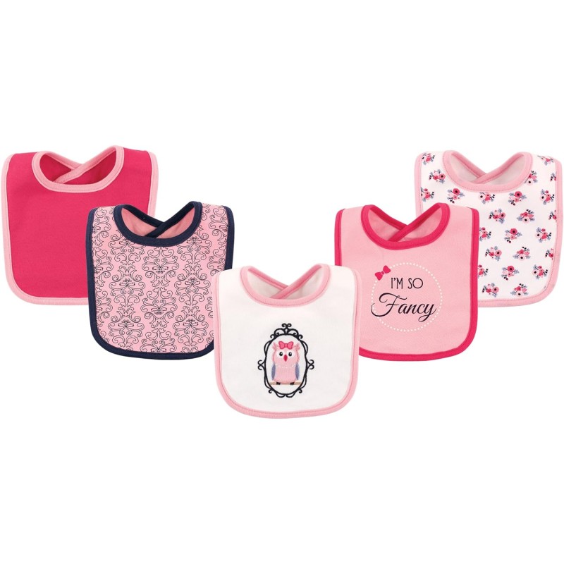 Hudson Baby is a premium baby clothing and accessories line that features better feeding solutions for mom and baby. Hudson Baby 5-Pack soft cotton droller bibs are ideal for catching drool and keeping baby dry. Terry backing helps absorb any liquid and stays off baby's clothes and neck to prevent rashes and clothing changes. Hook and loop closure is easy on baby's skin. Bib is perfect for feedings or all day to catch any drool.