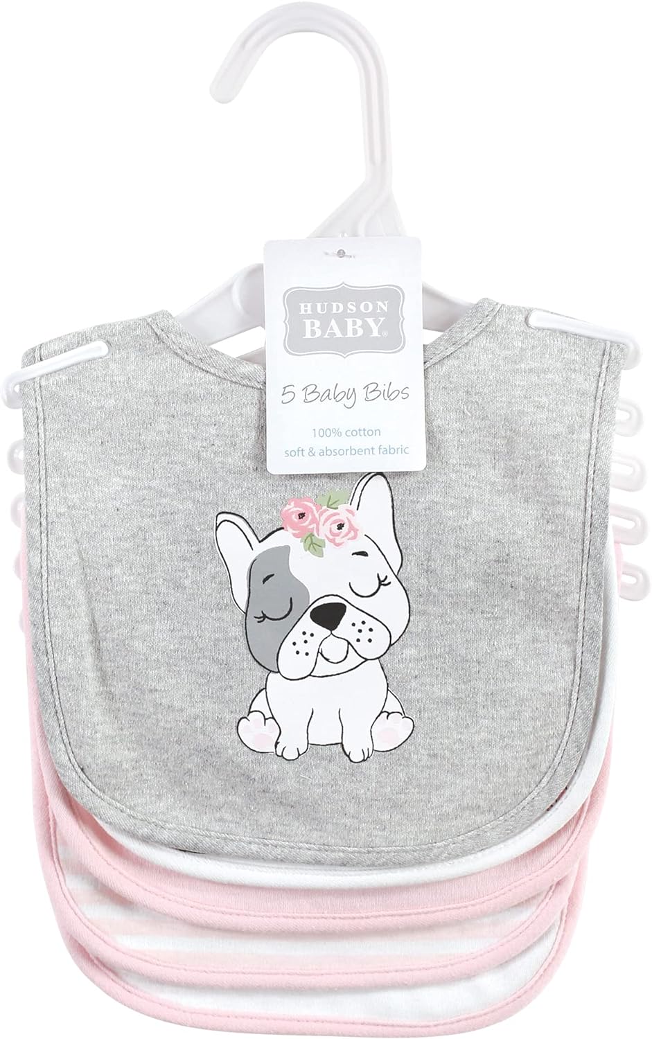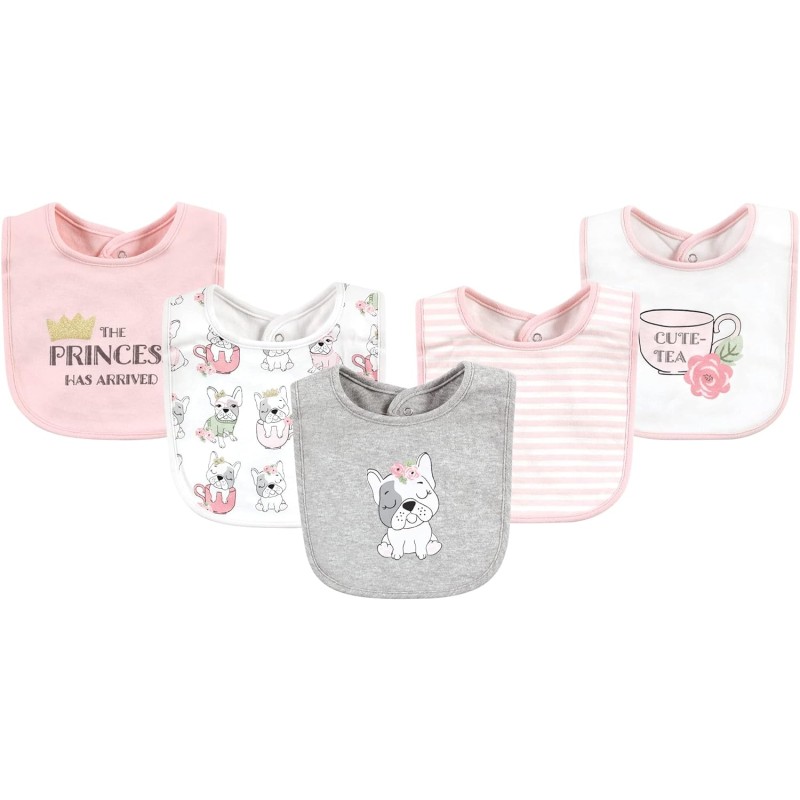 Hudson Baby is a premium baby clothing and accessories line that features better feeding solutions for mom and baby. Hudson Baby 5-Pack soft cotton droller bibs are ideal for catching drool and keeping baby dry. Terry backing helps absorb any liquid and stays off baby's clothes and neck to prevent rashes and clothing changes. Hook and loop closure is easy on baby's skin. Bib is perfect for feedings or all day to catch any drool.