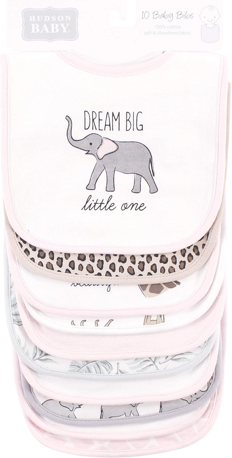 Hudson Baby is a premium baby clothing and accessories line that features better feeding solutions for mom and baby. Hudson Baby 5-Pack soft cotton droller bibs are ideal for catching drool and keeping baby dry. Terry backing helps absorb any liquid and stays off baby's clothes and neck to prevent rashes and clothing changes. Hook and loop closure is easy on baby's skin. Bib is perfect for feedings or all day to catch any drool.