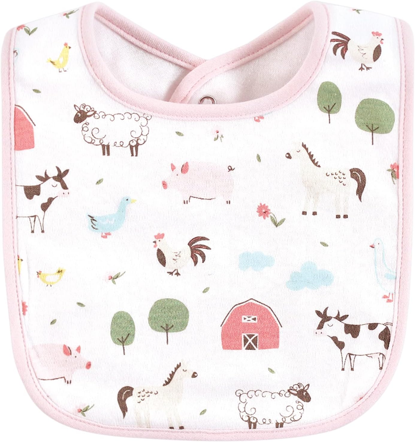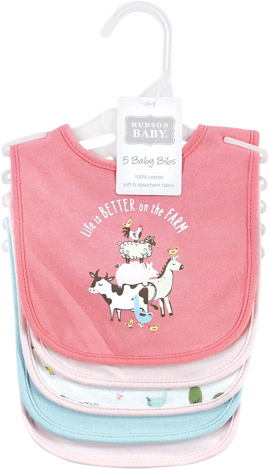 Hudson Baby Cotton Bibs(Pink Farm Animals)