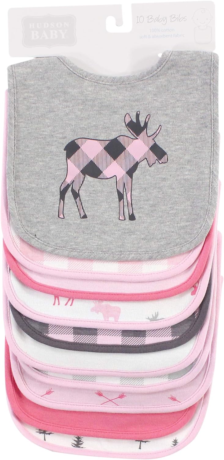 Hudson Baby Cotton Bibs(Pink Plaid Moose)