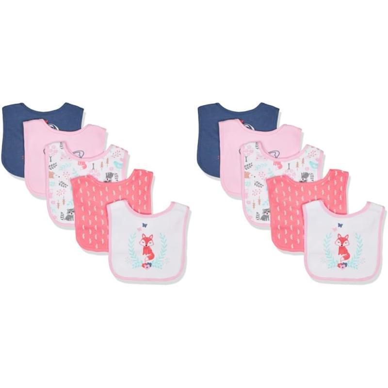 Hudson Baby is a premium baby clothing and accessories line that features better feeding solutions for mom and baby. Hudson Baby 5-Pack soft cotton droller bibs are ideal for catching drool and keeping baby dry. Terry backing helps absorb any liquid and stays off baby's clothes and neck to prevent rashes and clothing changes. Hook and loop closure is easy on baby's skin. Bib is perfect for feedings or all day to catch any drool.
