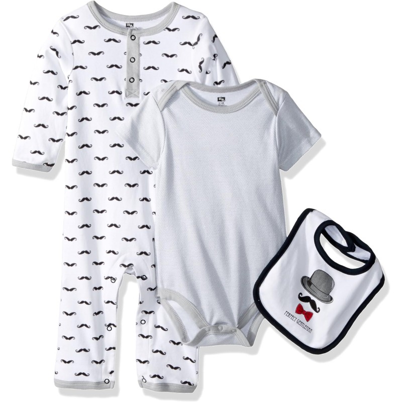 Hudson Baby Cotton Coverall, Bodysuit and Bib Set Unisex Baby(Gentlemen)