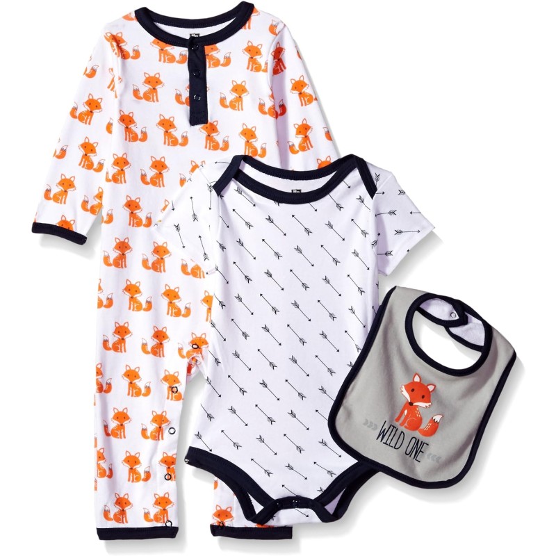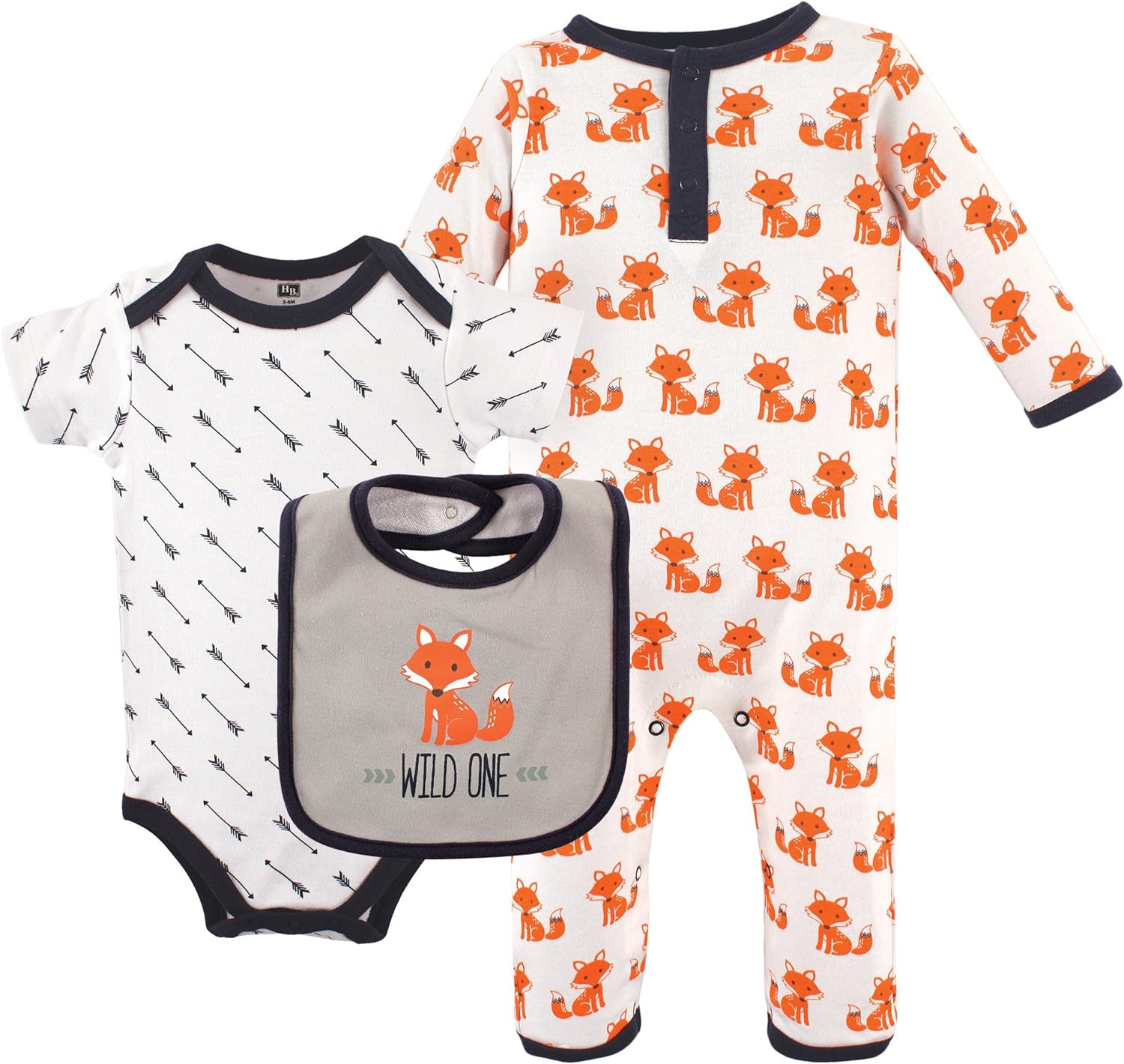 Hudson Baby Cotton Coverall, Bodysuit and Bib Set Unisex Baby(Wild One)