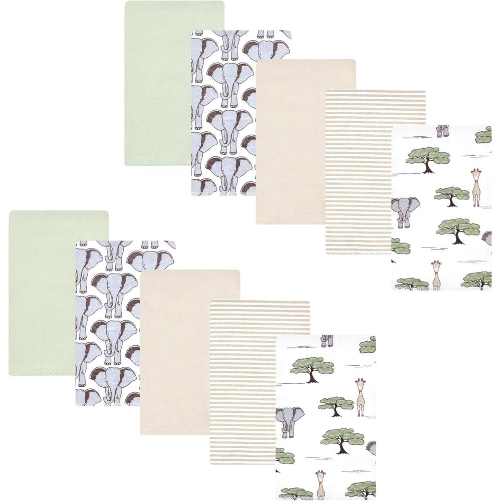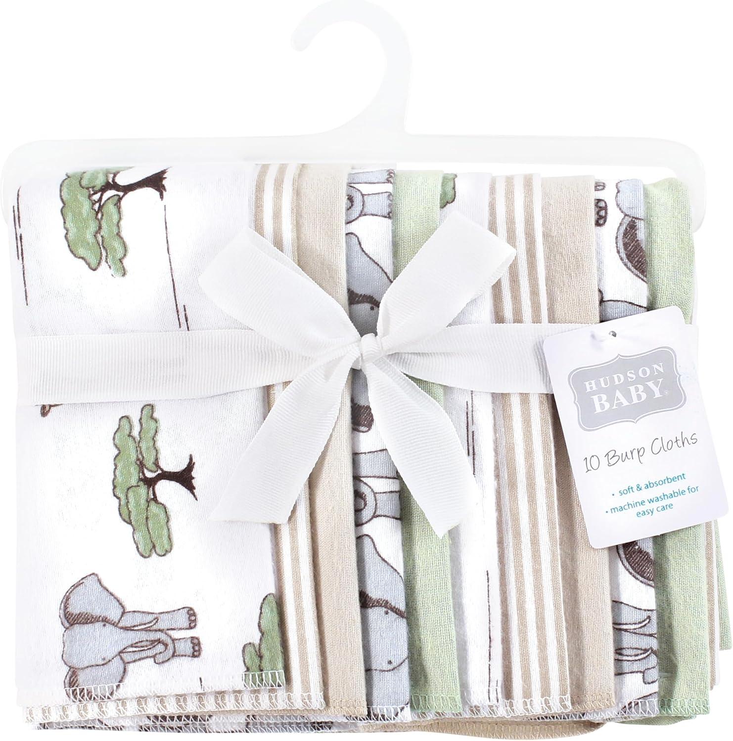 Hudson Baby Cotton Flannel Burp Cloths 10-Pack, Wild Safari Adventures, One Size