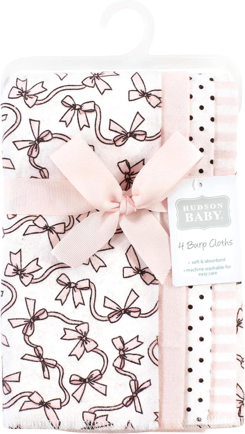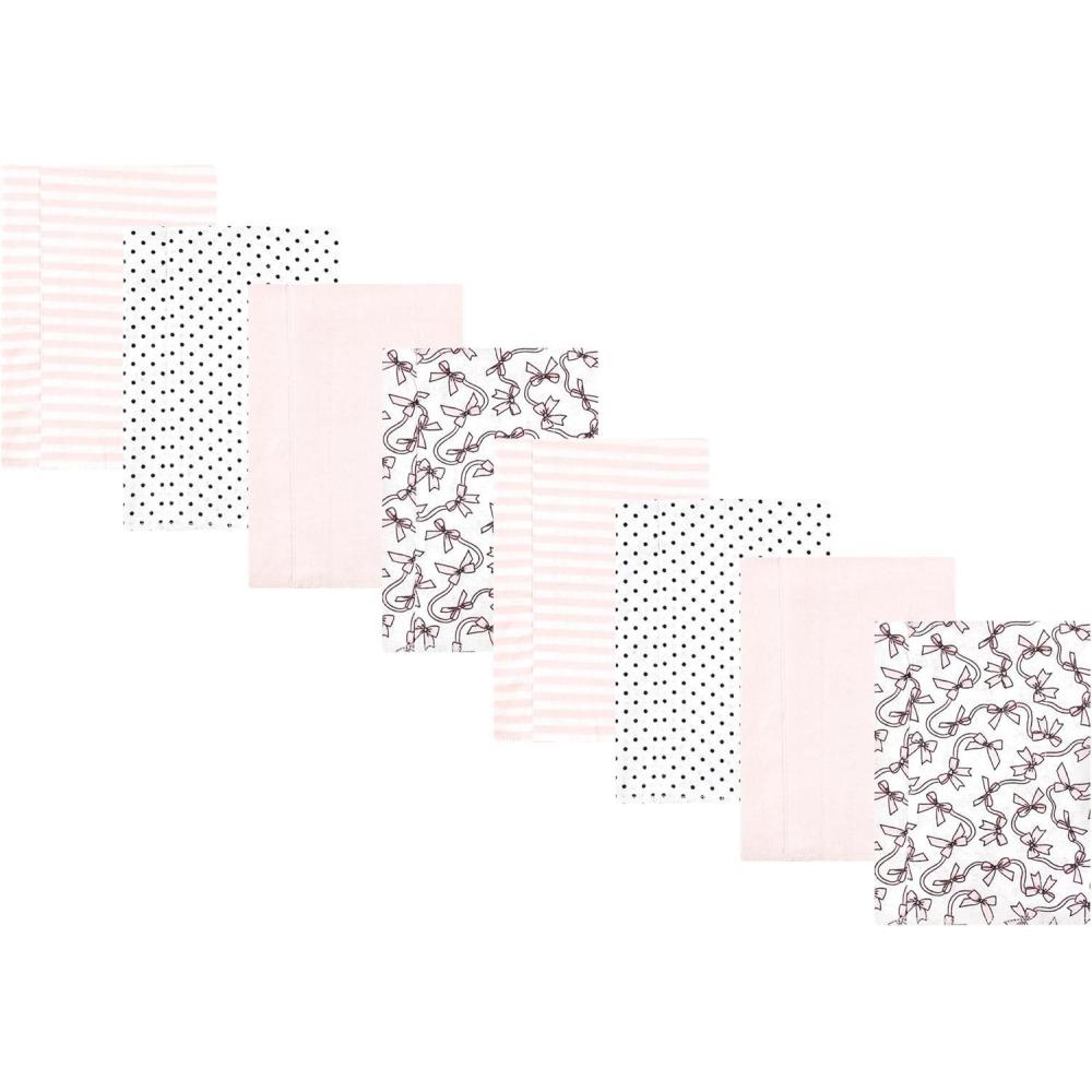 Hudson Baby Cotton Poly Flannel Burp Cloths Multipack, Mustache Hat 8-Pack, One Size(Pink Bows 8-pack)