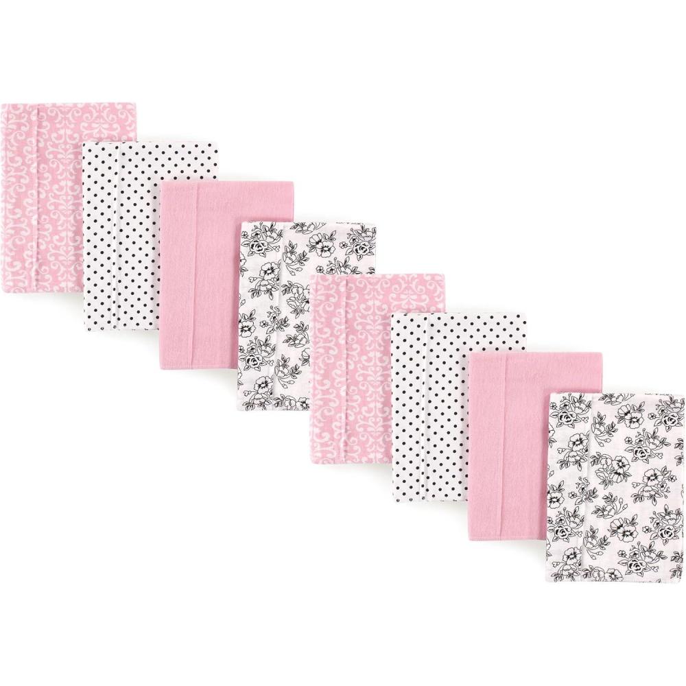 Hudson Baby Cotton Poly Flannel Burp Cloths Multipack, Mustache Hat 8-Pack, One Size(Toile 8-pack)