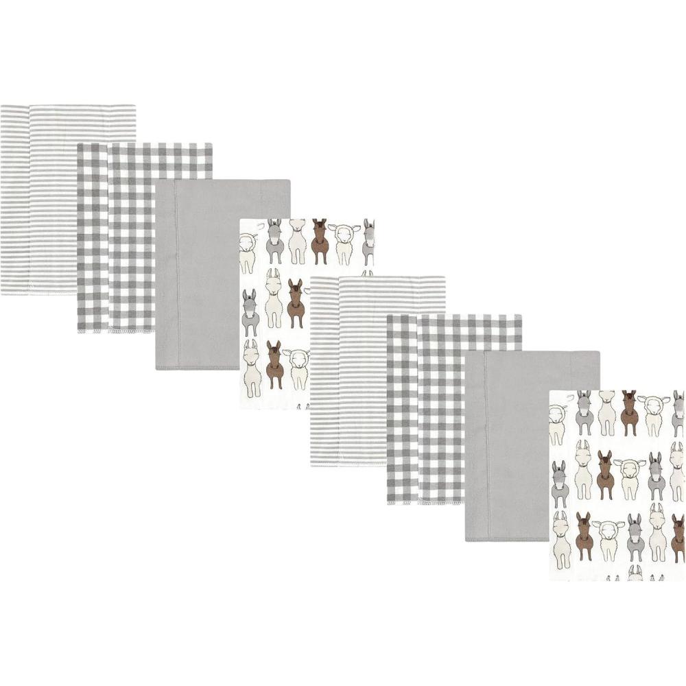imageHudson Baby Cotton Poly Flannel Burp Cloths Multipack Sweet Roses 8Pack One SizeFarm Friends Grey 8pack