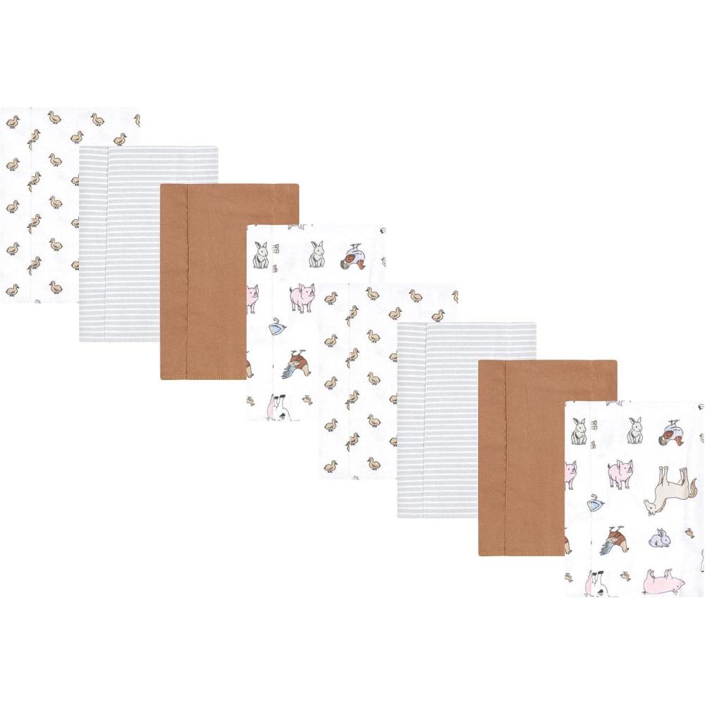 Hudson Baby Cotton Poly Flannel Burp Cloths Multipack, Sweet Roses 8-Pack, One Size(Farm World 8-pack)