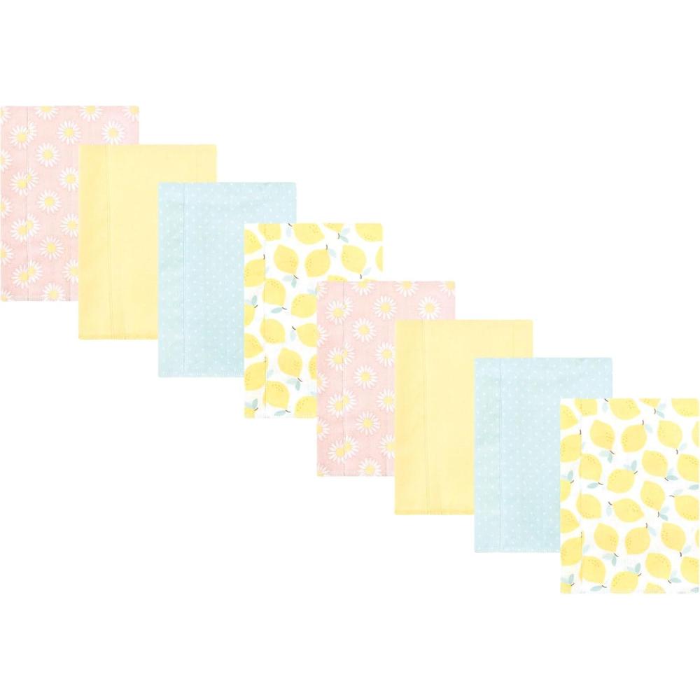 Hudson Baby Cotton Poly Flannel Burp Cloths Multipack, Sweet Roses 8-Pack, One Size(Lemons 8-pack)