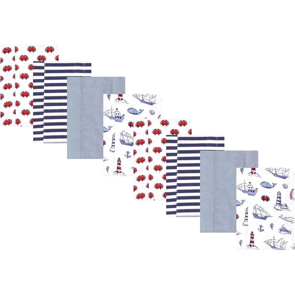 Hudson Baby Cotton Poly Flannel Burp Cloths Multipack, Sweet Roses 8-Pack, One Size(Lighthouse 8-pack)
