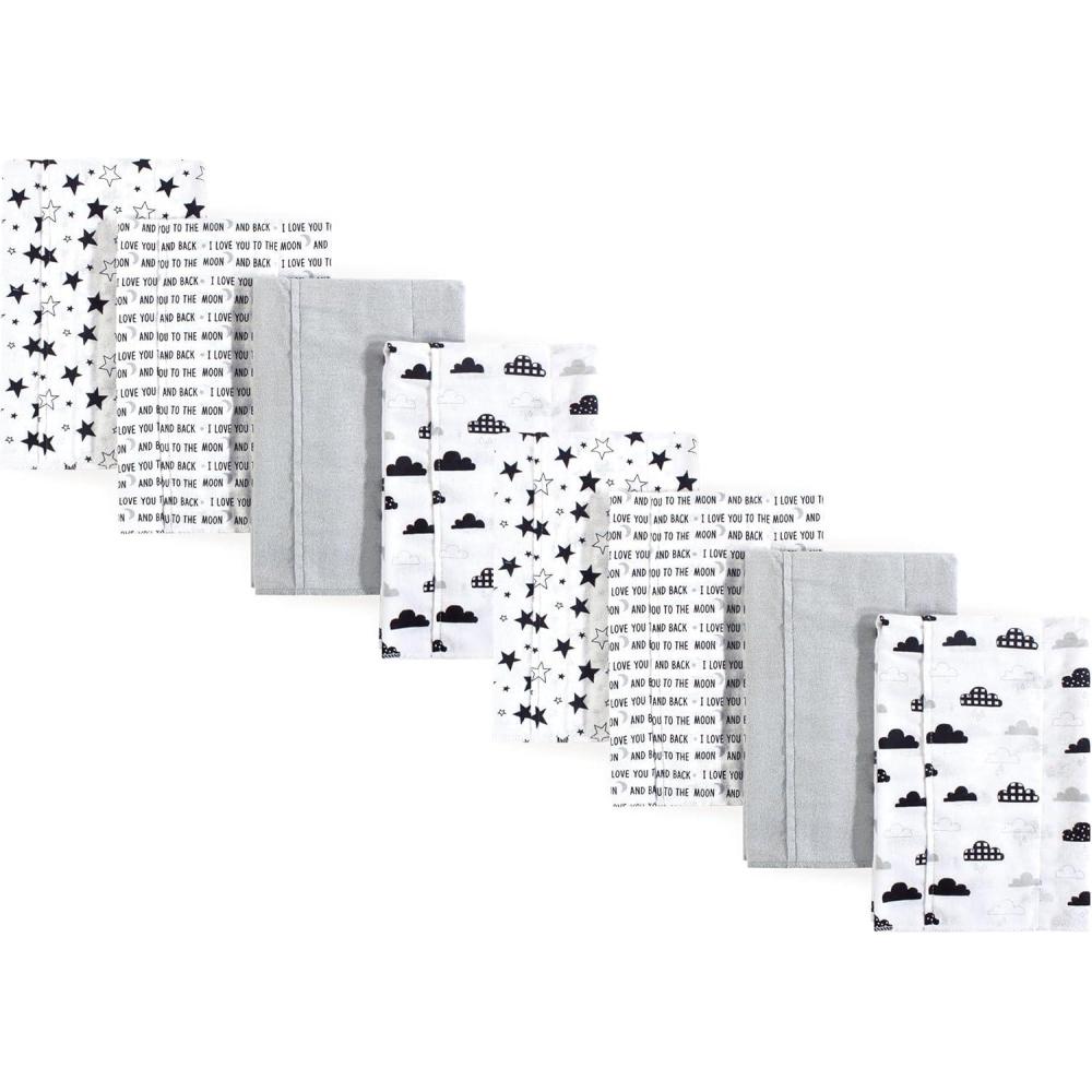 Hudson Baby Cotton Poly Flannel Burp Cloths Multipack, Sweet Roses 8-Pack, One Size(Moon and Back 8-pack)