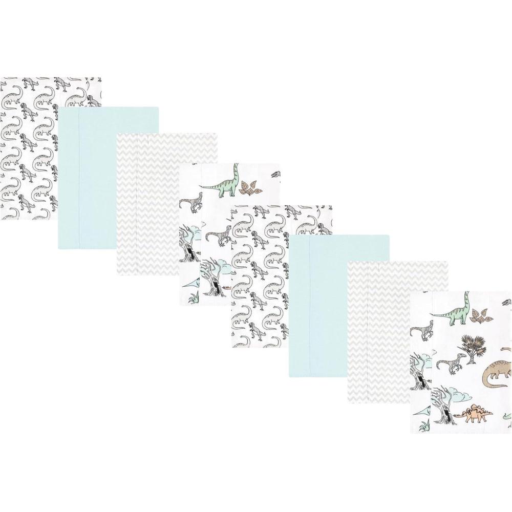 Hudson Baby Cotton Poly Flannel Burp Cloths Multipack, Sweet Roses 8-Pack, One Size(Neutral Dino World 8-pack)
