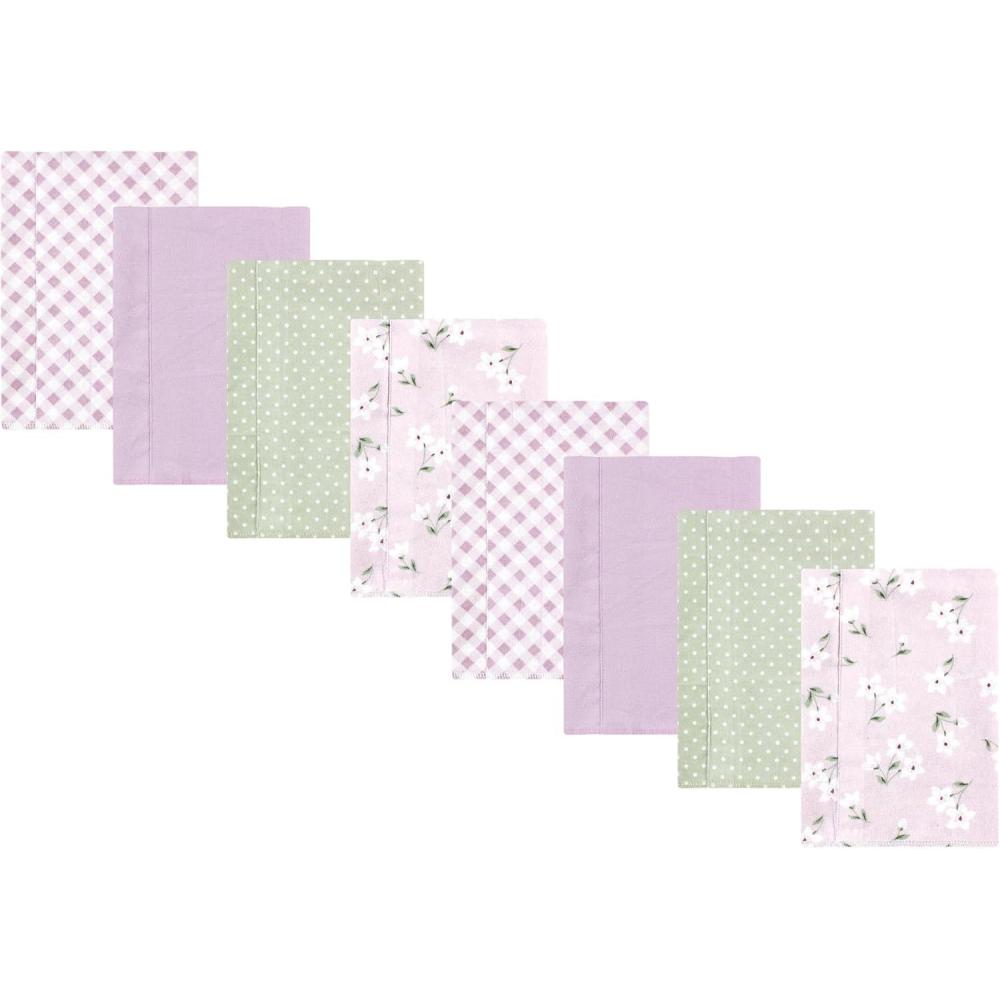 Hudson Baby Cotton Poly Flannel Burp Cloths Multipack, Sweet Roses 8-Pack, One Size(Purple Dainty Floral 8-pack)